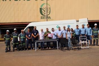 A Usina Estiva realizou doação destinando uma maca, duas cadeiras de rodas e uma cadeira de banho aos hospitais mantidos pela Fundação Padre Albino, além de lacres de alumínio e tampinhas plásticas para o Hospital de Câncer de Catanduva (HCC).