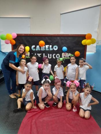 Já na terça-feira, a animação continuou com o “Dia do Cabelo Maluco”, novamente voltado à Educação Infantil. Com o tema “Cabelos doidinhos, crianças felizes!”, os pequenos desfilaram seus penteados criativos em um tapete vermelho, em clima de descontração e alegria. No mesmo dia, os estudantes do Ensino Fundamental I também tiveram programação especial. As turmas do 4º e 5º ano participaram do “Dia do Brinquedo”, levando seus brinquedos preferidos para a escola, enquanto os alunos do 1º ao 3º ano aproveitaram a manhã de lazer no Buffet Saborella, com brincadeiras no parquinho e momentos de socialização fora do ambiente escolar.