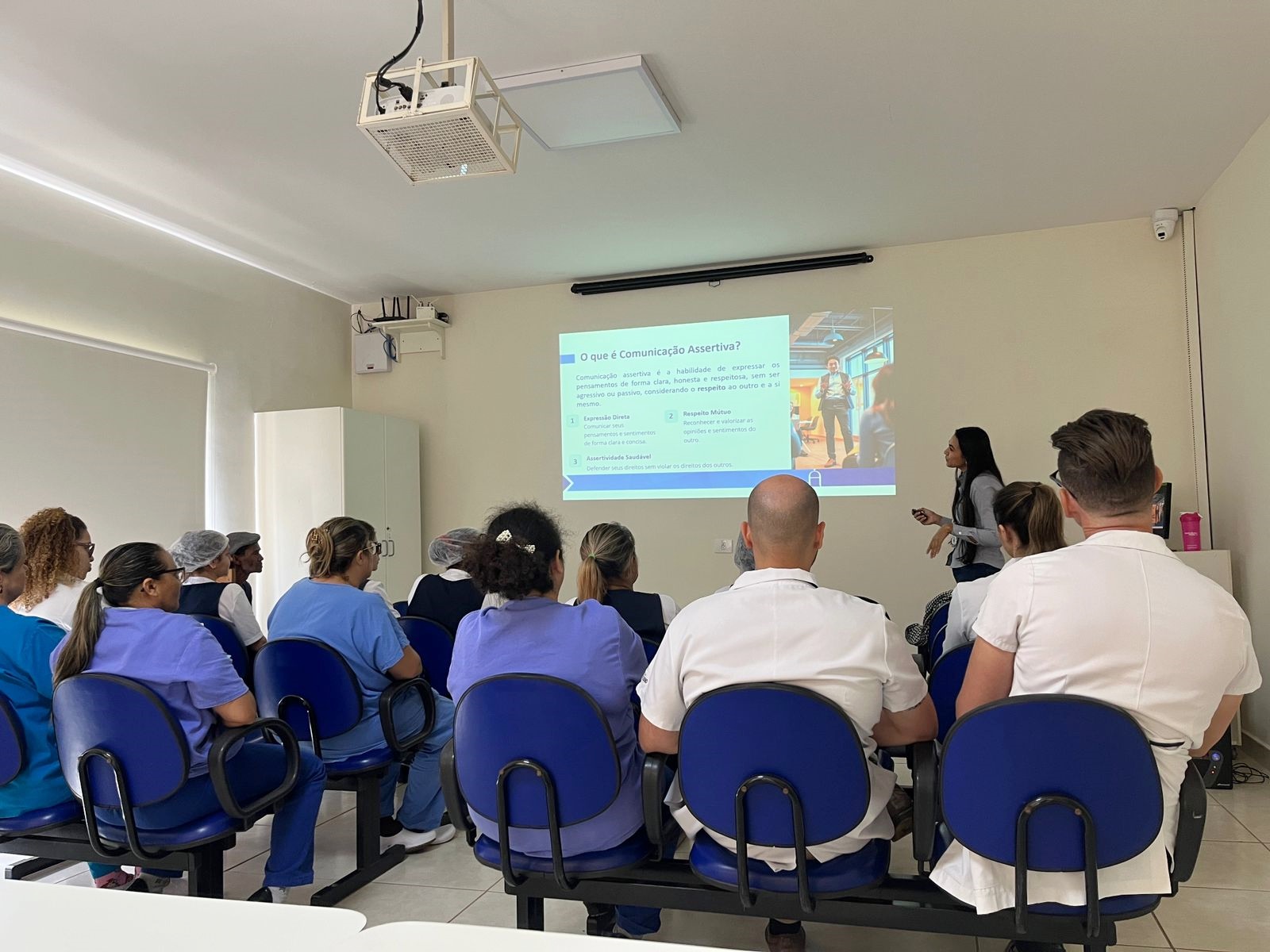 O encontro abordou conceitos e práticas voltados à expressão clara, respeitosa e empática das ideias e sentimentos dos profissionais, incentivando a construção do ambiente de trabalho mais colaborativo, harmonioso e produtivo. “Os participantes puderam refletir sobre a importância de se comunicar de forma assertiva — expressando suas opiniões e necessidades com segurança e respeito — e compreenderam como essa postura contribui para a melhoria das relações entre colegas, internos e a comunidade”, explicou a responsável da Enfermagem do Recanto, Juliana Fachim.