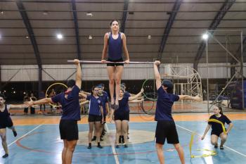 Na sequência das apresentações, os alunos do primeiro ano apresentaram coreografias da modalidade Ginástica para Todos, divididos em quatro grupos com referências nas modalidades ginástica artística, acrobática, de trampolim e rítmica, encerrando com formações de pirâmides humanas.