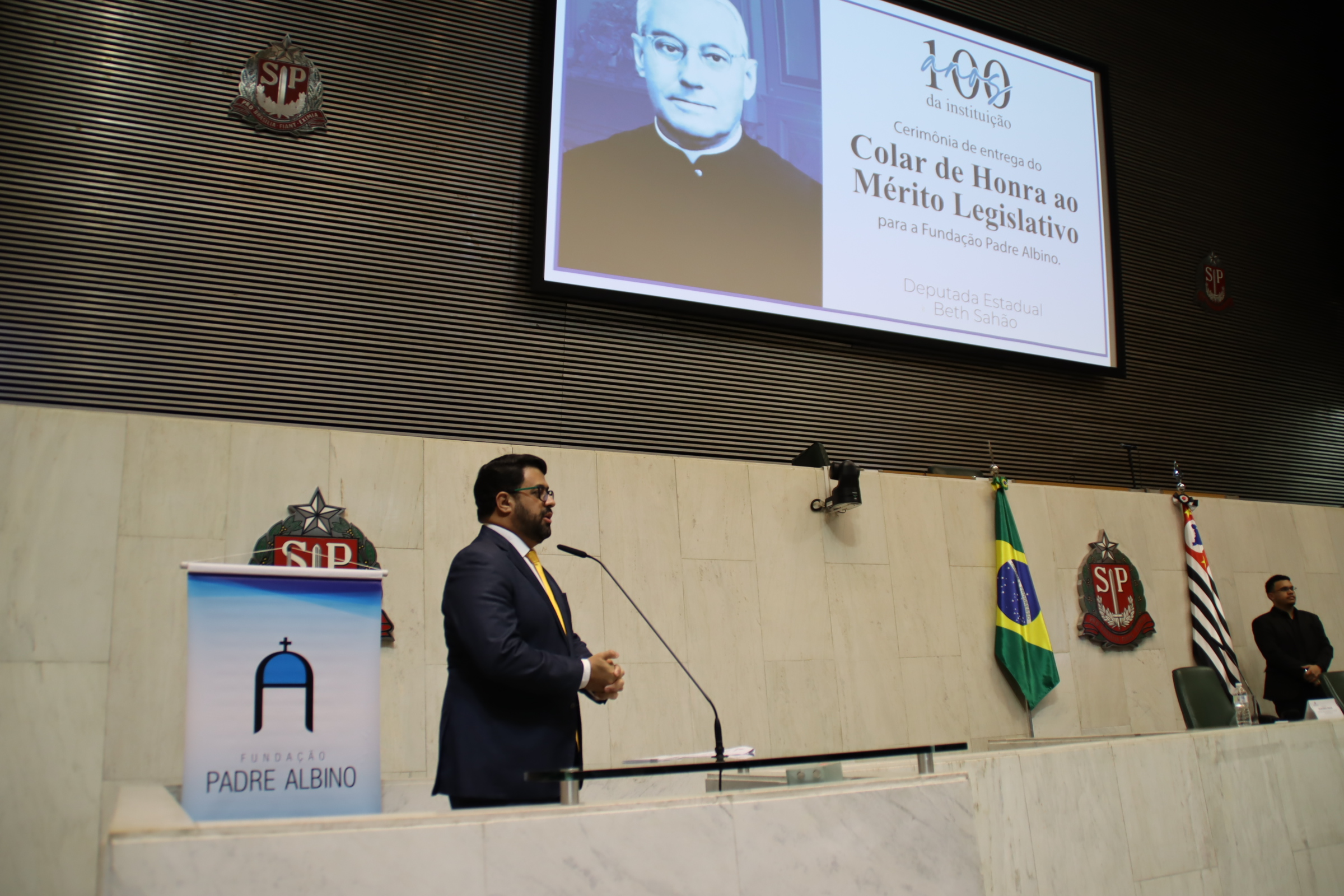 Em seu discurso, a deputada Beth Sahão destacou o papel da Fundação na promoção da saúde, da educação e da assistência social. “A Fundação Padre Albino presta um serviço inestimável não apenas para Catanduva, mas para toda a região. Sua estrutura de atendimento, nos âmbitos hospitalar, educacional, assistencial e cultural, impacta diretamente a vida de milhares de pessoas. Essa homenagem é celebrar o sonho de um homem com a vontade inabalável de fazer o bem. Catanduva não seria o que é hoje sem as benfeitorias de Padre Albino”, afirmou a parlamentar, lembrando também seu apoio histórico à instituição por meio do envio de recursos e parcerias.