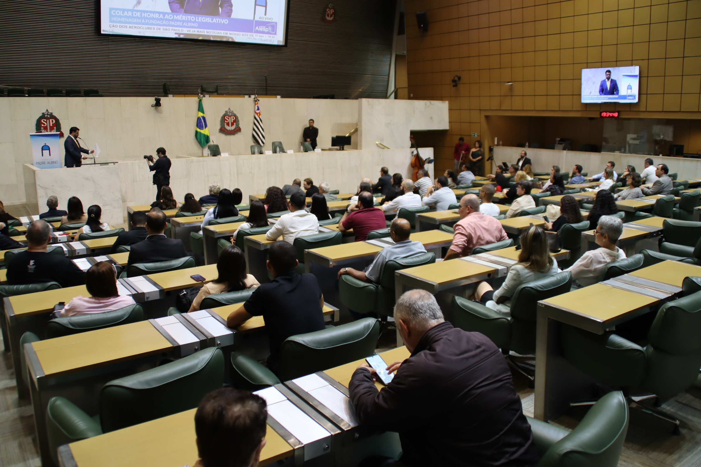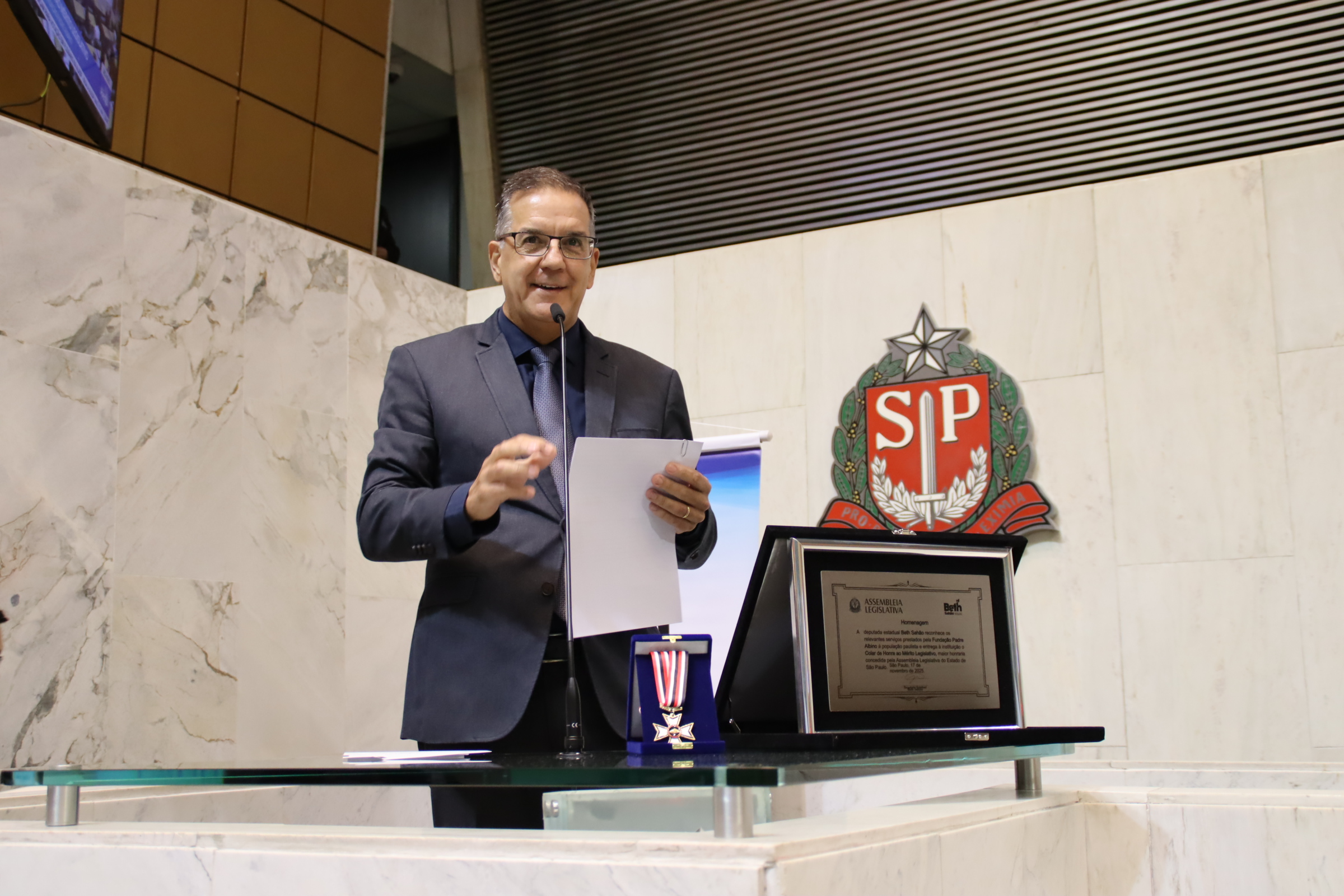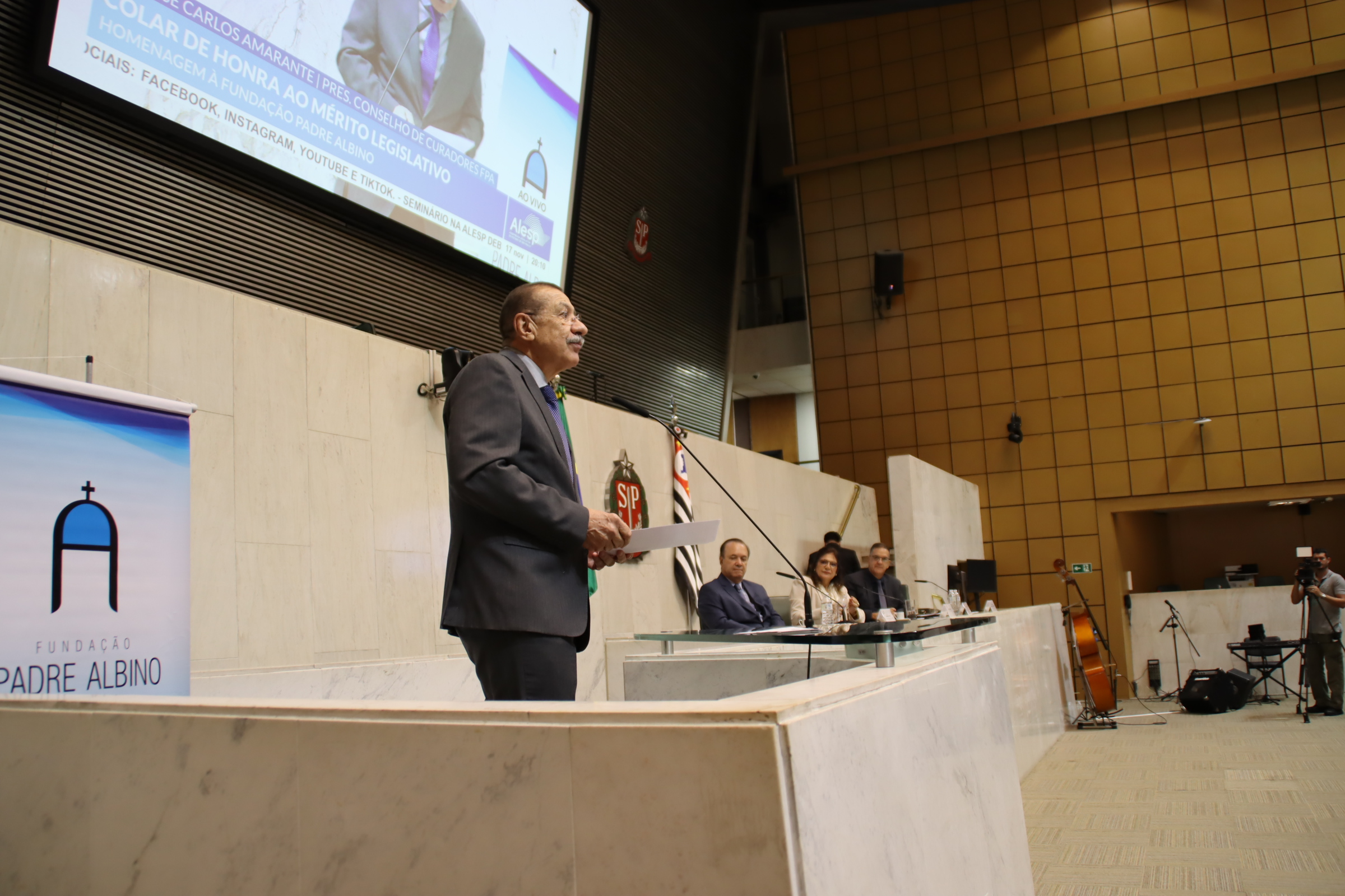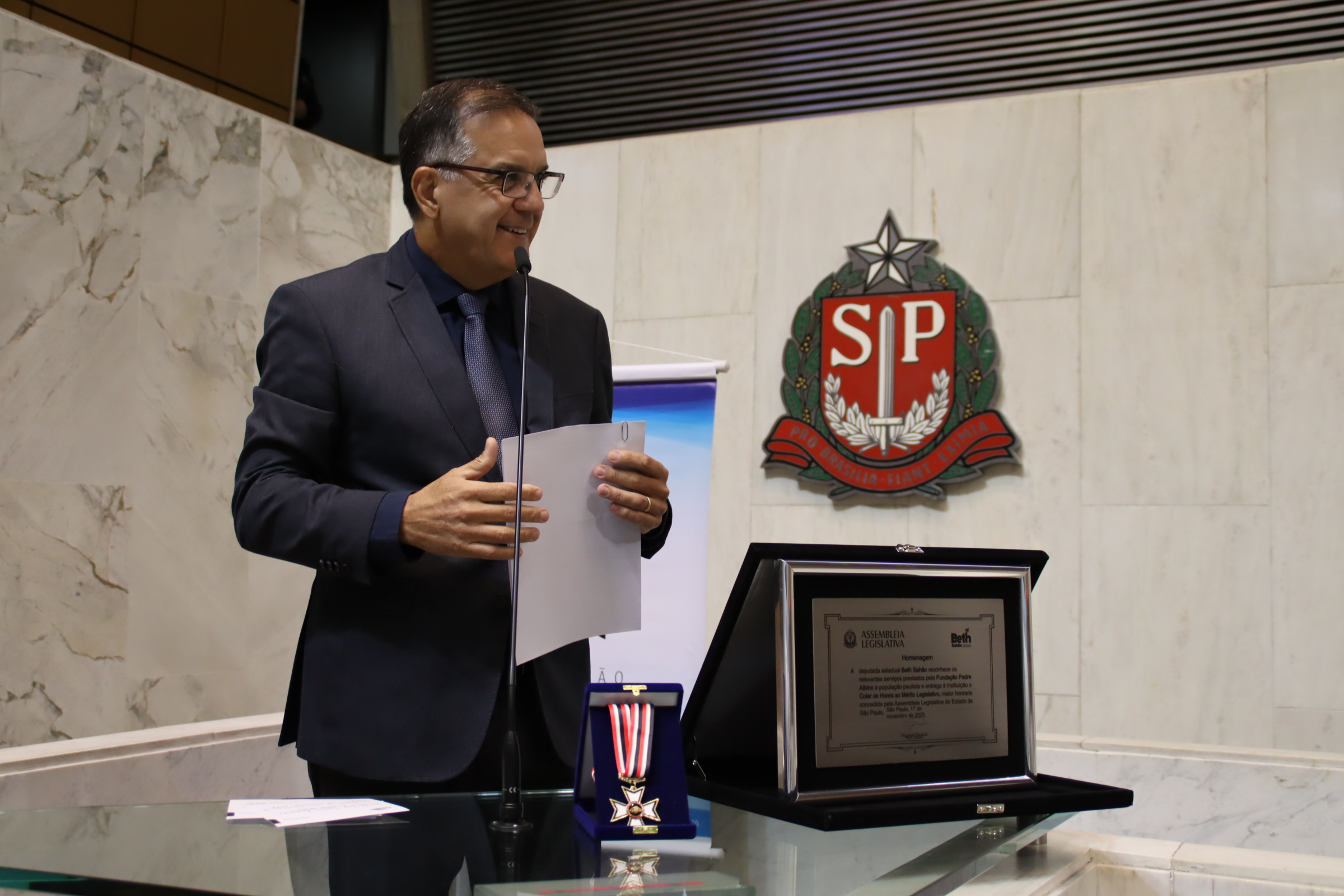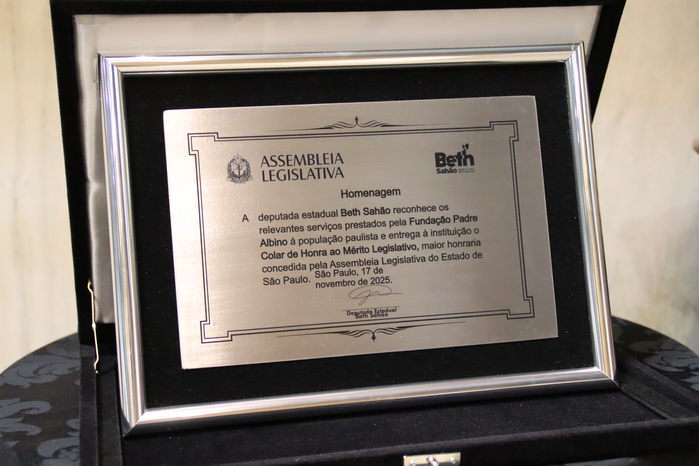 Na noite desta segunda-feira, 17 de novembro, a Fundação Padre Albino (FPA) recebeu o Colar de Honra ao Mérito Legislativo, a mais alta honraria concedida pela Assembleia Legislativa do Estado de São Paulo (Alesp). A homenagem foi proposta pela deputada estadual Beth Sahão (PT) em reconhecimento à trajetória centenária da instituição, que em 2026 completará 100 anos de história e serviços prestados à população.