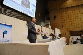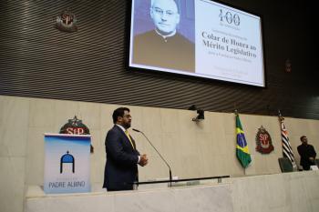 O presidente da Diretoria Executiva da Fundação Padre Albino, Reginaldo Lopes, agradeceu a homenagem e ressaltou o significado do reconhecimento às vésperas do centenário da entidade. "Na saúde, nossas unidades atendem dezenas de municípios, realizando milhares de consultas, exames e internações, elevando o nível de vida da população. Na educação, formamos jovens e profissionais, promovemos a pesquisa e o pensamento crítico. Na cultura, Padre Albino valorizou Catanduva ao incluir a Igreja Matriz no roteiro artístico do Estado, com as telas do mestre Benedito Calixto. Com isso, a Fundação não apenas enfrenta os desafios imediatos, mas contribui para a construção de uma sociedade mais justa, humana e solidária. A instituição que tenho a honra de representar não busca apenas crescer em tamanho, mas, sobretudo, em impacto social, em dignidade e em esperança. Expresso, em nome da Fundação Padre Albino e de todos os que, ao longo dos anos, colaboraram com a sua missão, o nosso mais sincero agradecimento", destacou Reginaldo.
