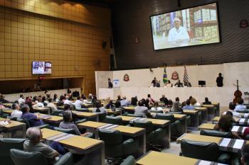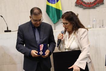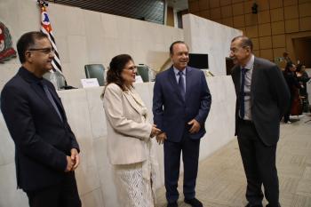 O presidente do Conselho de Curadores, Dr. José Carlos Rodrigues Amarante, também expressou gratidão e emoção pela homenagem. “Em 2024, nossos hospitais atenderam aproximadamente 400 mil pacientes, entre consultas, exames, internações e tratamento, na área da Educação já formamos mais de 13 mil profissionais”, citando também o trabalho na área da assistência, com o Recanto Monsenhor Albino, a gestão do AME, o Padre Albino Saúde e o Colégio Catanduva. “Receber o Colar de Honra ao Mérito Legislativo é um reconhecimento que compartilhamos com cada colaborador da Fundação Padre Albino. É um estímulo para continuar a caminhar. Que possamos juntos, Estado e sociedade, construir uma região cada vez mais humana, justa e desenvolvida, à altura da confiança que depositam em nós”, finalizou.