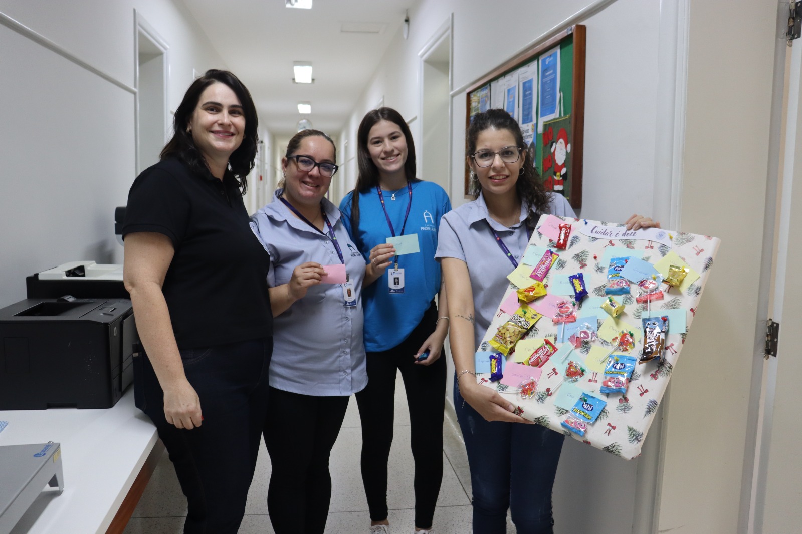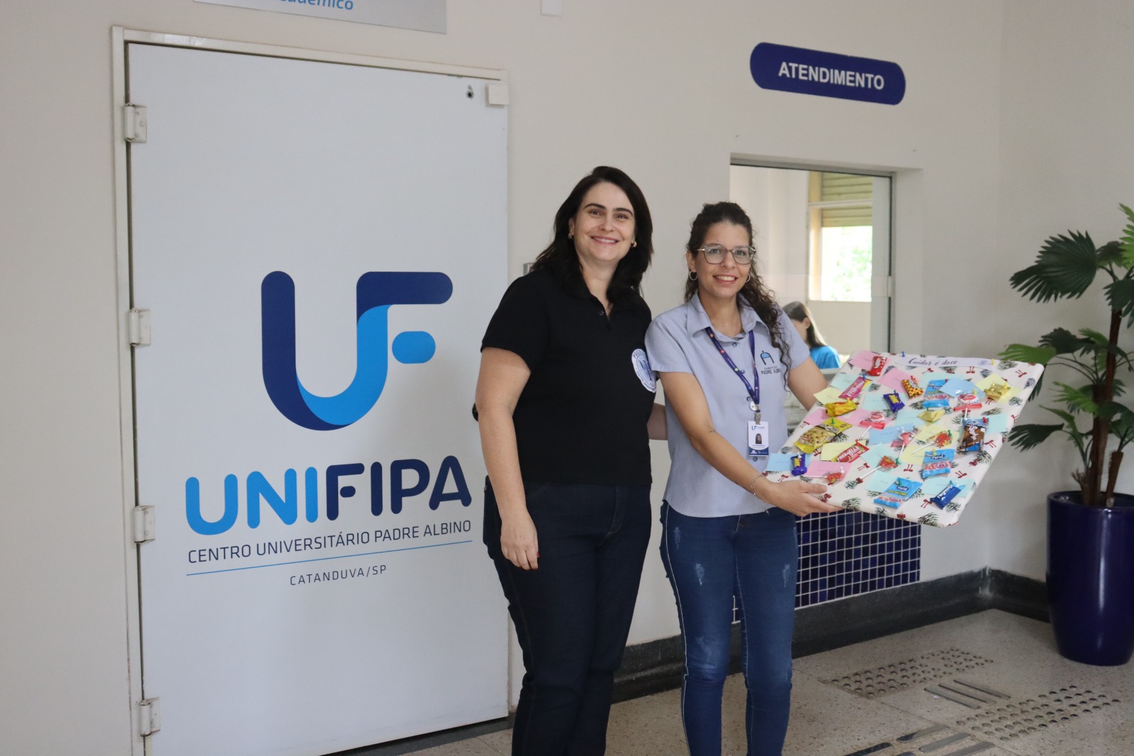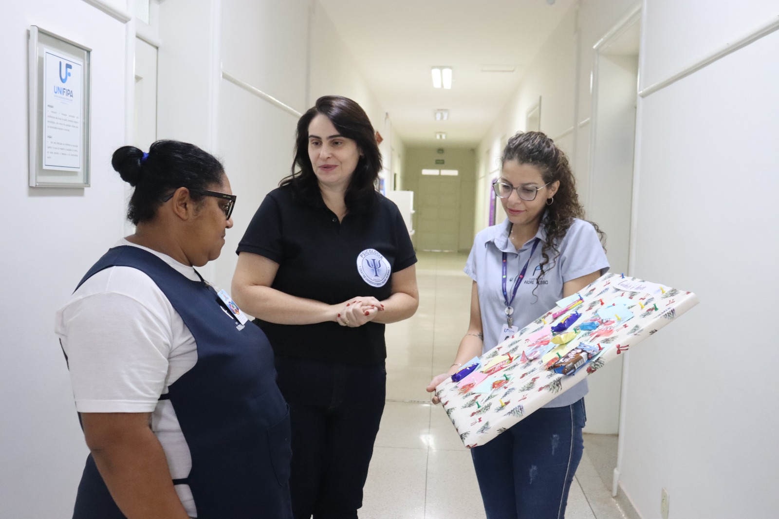A coordenadora do curso de Psicologia, Profa. Dra. Luciana Calza, e a secretária do curso, Alessandra Silva dos Santos, participaram da ação distribuindo os doces acompanhados das frases. De acordo com Luciana, iniciativas como essa contribuem para fortalecer o clima institucional, valorizando o cuidado e o reconhecimento no ambiente de trabalho.
