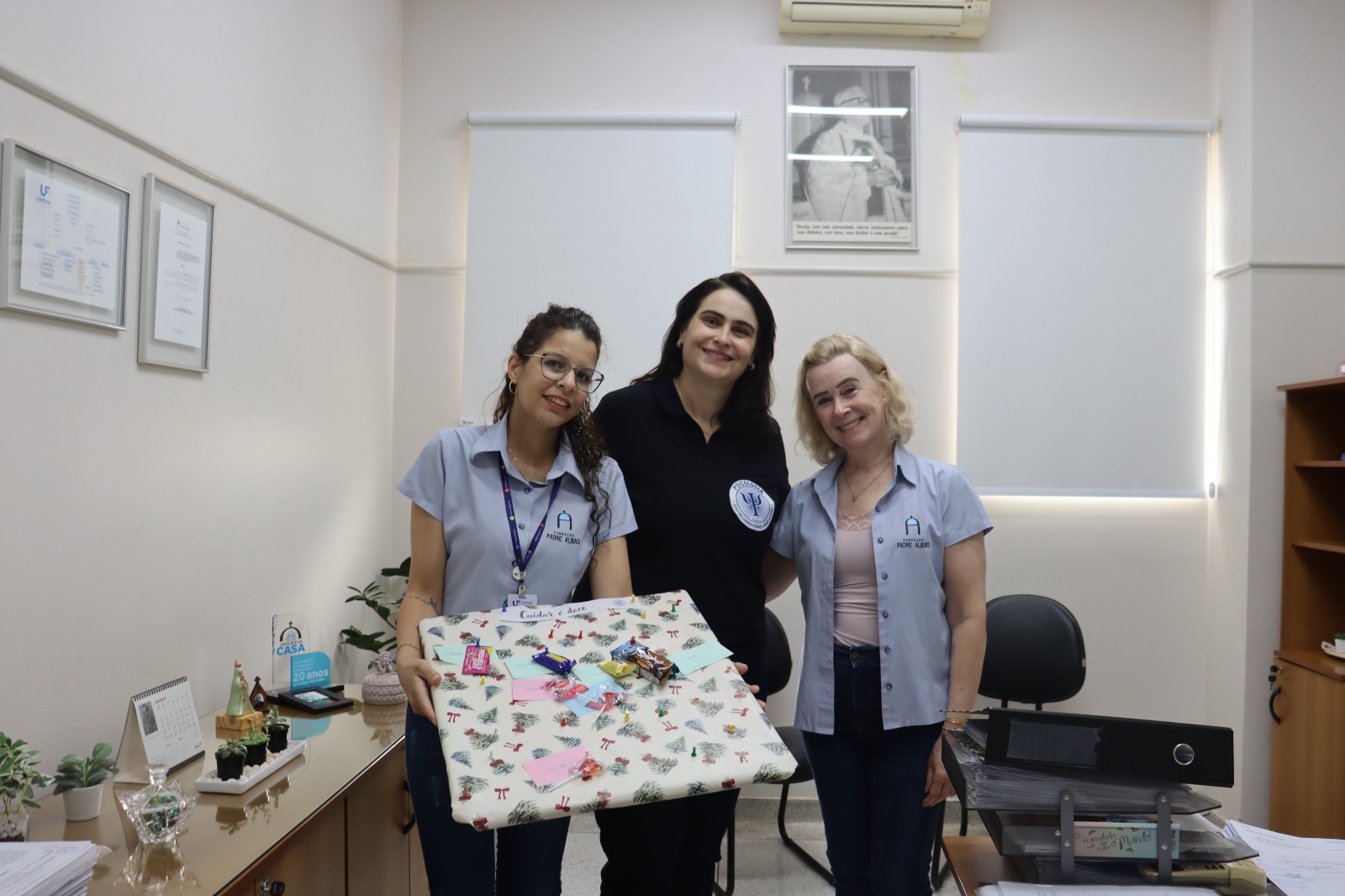 O curso de Psicologia da Unifipa realizou, no dia 24 de novembro, a ação “Cuidar é Doce”, criada com o objetivo de promover bem-estar emocional, fortalecer vínculos e reconhecer o trabalho dos colaboradores da instituição ao longo do ano. A ação homenageou equipes de diferentes setores, como reitoria, tesouraria, jurídico, gestão de negócios, secretarias de curso, manutenção, tecnologia da informação, central de relacionamento ao cliente, biblioteca, inspetores de alunos, limpeza, café e gestores de curso. Segundo o curso, a proposta foi agradecer a dedicação e o apoio oferecido por todos no cotidiano acadêmico e administrativo.