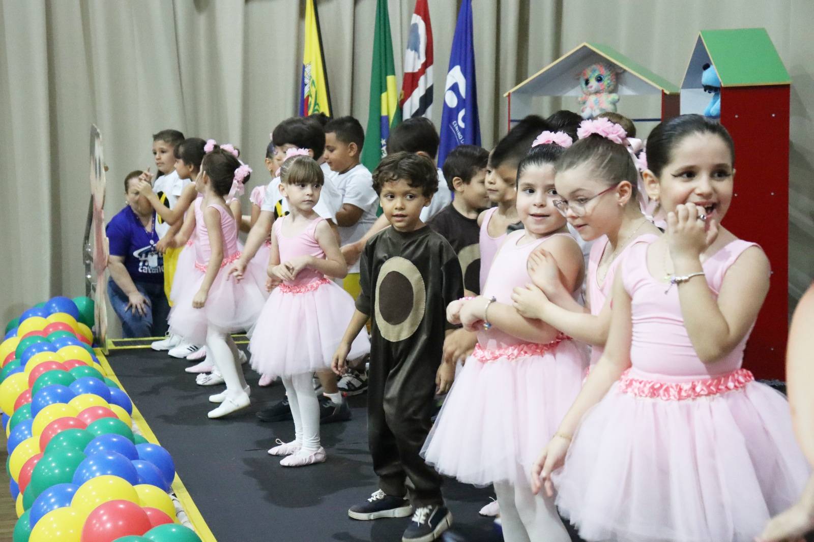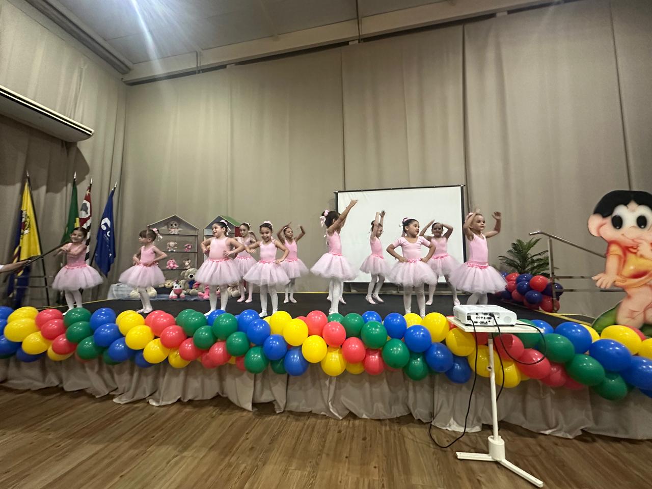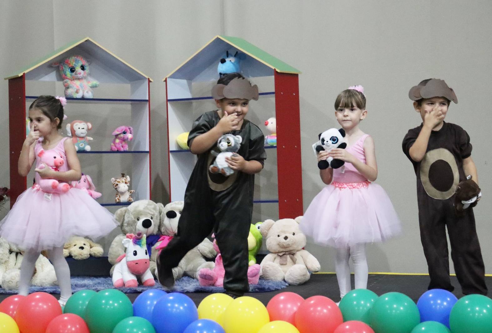 Entre as apresentações, estiveram: “A Bailarina”, que abriu o espetáculo; “O Macaquinho de Pilha”, simbolizando energia e alegria; “A Bola”, que remeteu à amizade, à diversão e à importância dos momentos de brincar; “O Urso”, destacando simplicidade, afeto e a alegria presente no cotidiano das crianças; uma apresentação em inglês, reforçando a diversidade de linguagens no processo educativo; e “Momentos Inesquecíveis”, sequência que celebrou recordações construídas ao longo do ano.