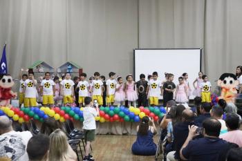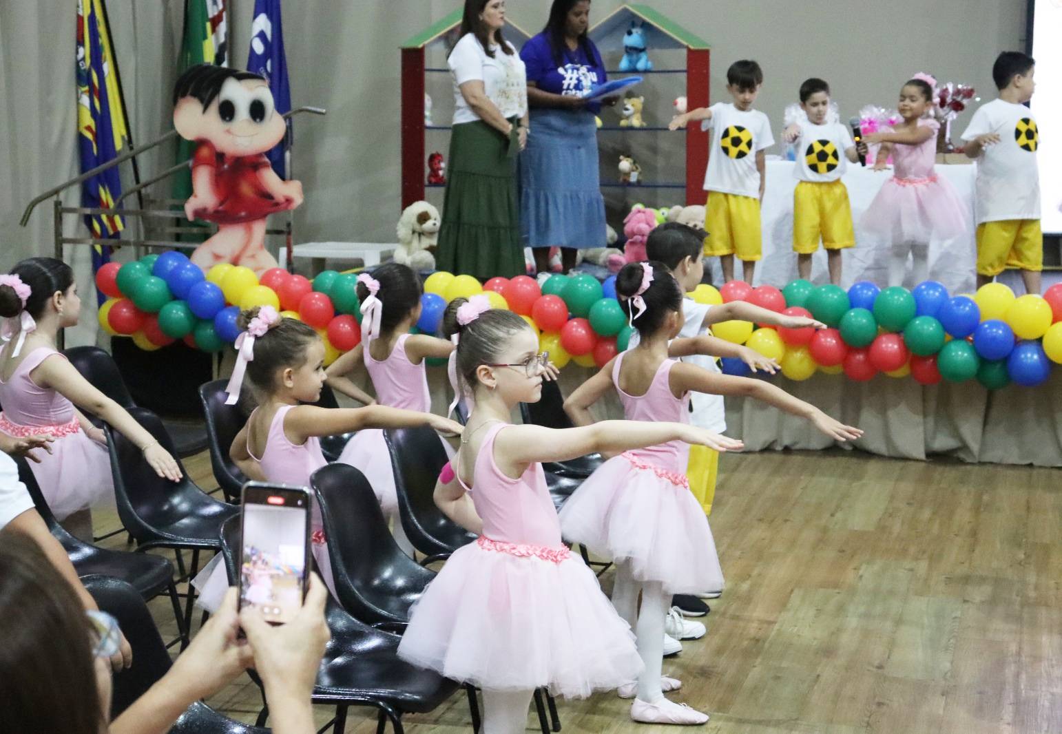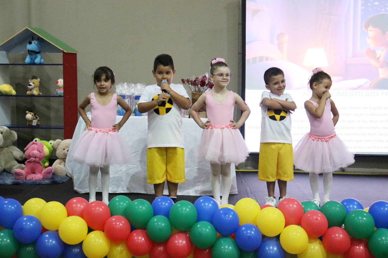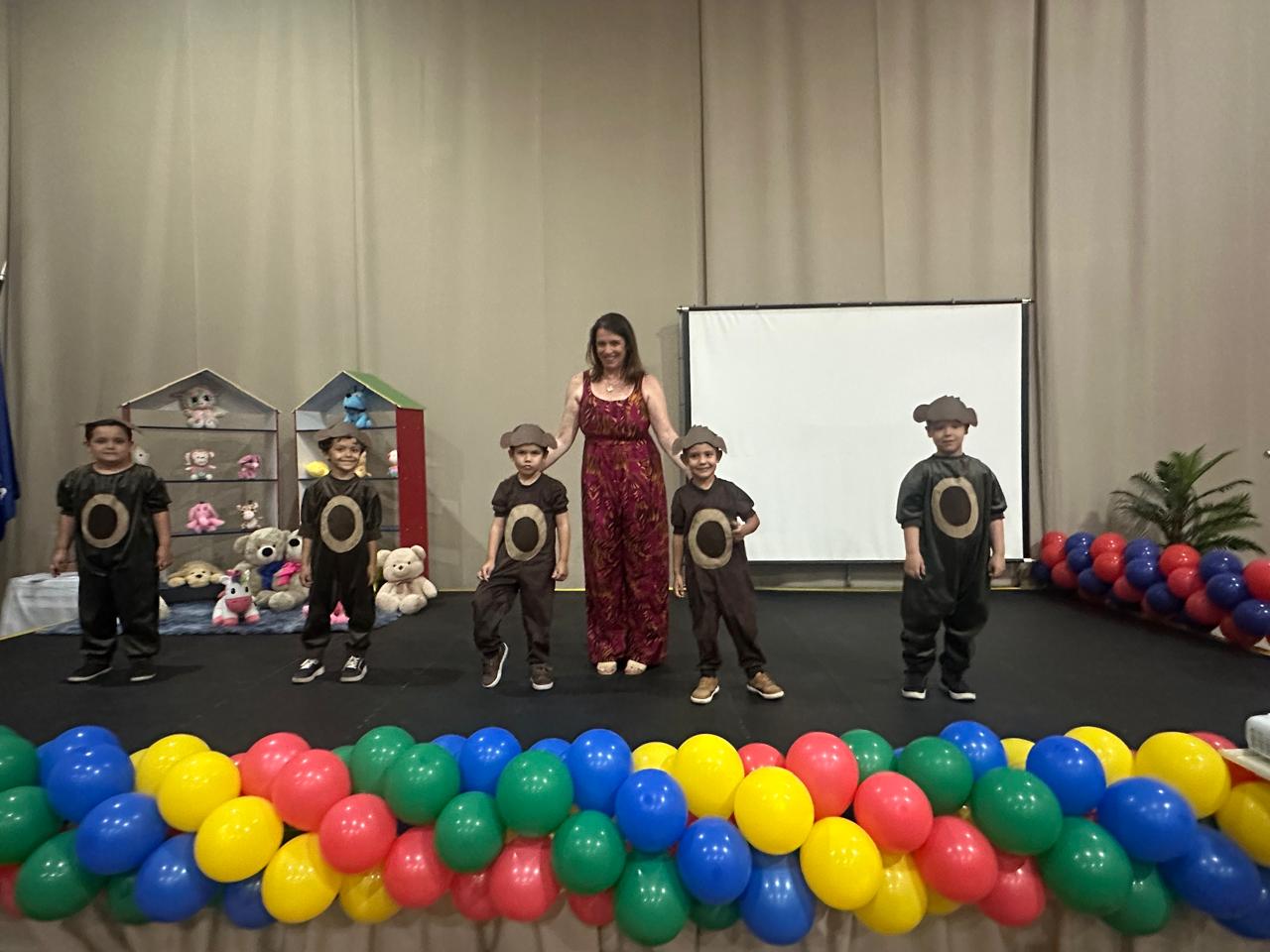 Entre as apresentações, estiveram: “A Bailarina”, que abriu o espetáculo; “O Macaquinho de Pilha”, simbolizando energia e alegria; “A Bola”, que remeteu à amizade, à diversão e à importância dos momentos de brincar; “O Urso”, destacando simplicidade, afeto e a alegria presente no cotidiano das crianças; uma apresentação em inglês, reforçando a diversidade de linguagens no processo educativo; e “Momentos Inesquecíveis”, sequência que celebrou recordações construídas ao longo do ano.