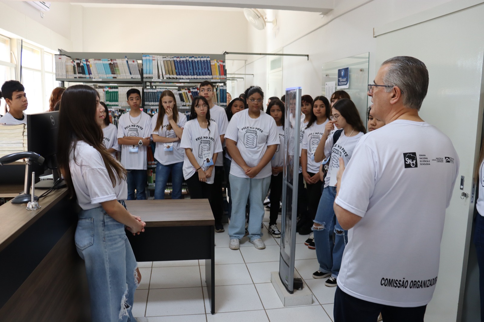 O cronograma foi dividido em cinco encontros. O primeiro, em 27 de agosto, incluiu acolhida, visita à biblioteca, introdução ao funcionamento do microscópio e organização das equipes, com sorteio das camadas da pele a serem estudadas. No segundo encontro, em 24 de setembro, os estudantes participaram de aula teórica e prática sobre as camadas da epiderme e da derme, seguida de atividade de microscopia.