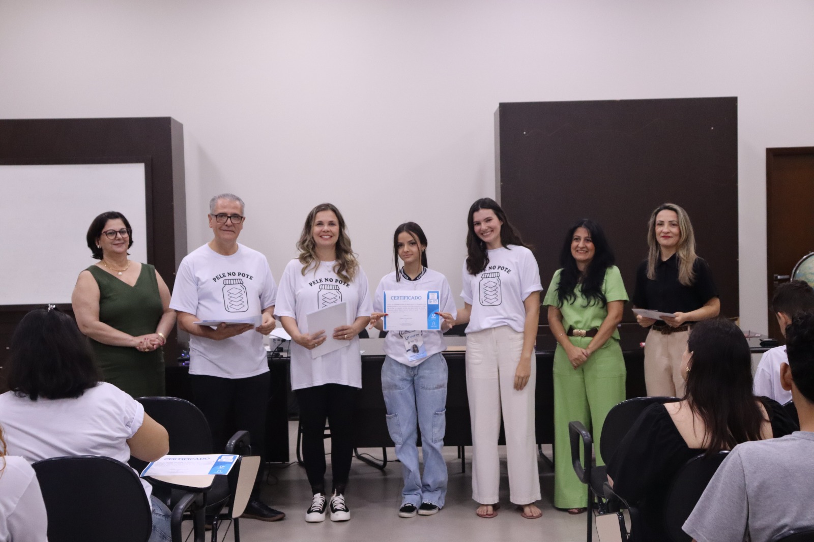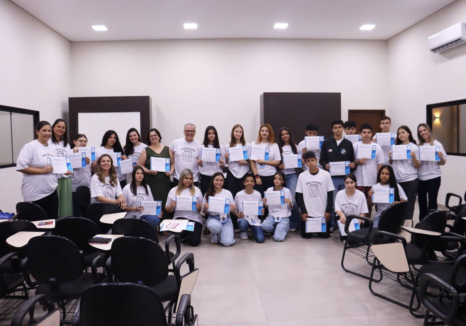 No quinto e último encontro, no dia 3 de dezembro, os estudantes participaram de cerimônia na sede da Secretaria Municipal de Educação, onde receberam certificados de conclusão. A entrega foi realizada pela Dra. Bruna Somilio e pelo gestor Mairto Geromel, com a presença da aluna do curso de Medicina da UNIFIPA/FAMECA, Lívia Braga Held e da secretária municipal de Educação, Profª Dra. Cláudia de Carvalho Cosmo.