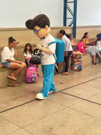 No início do ano letivo, os alunos foram recepcionados pelo mascote da UNIFIPA, Edu, marcando a chegada do primeiro semestre com a distribuição de brindes.