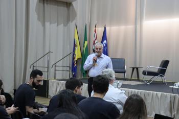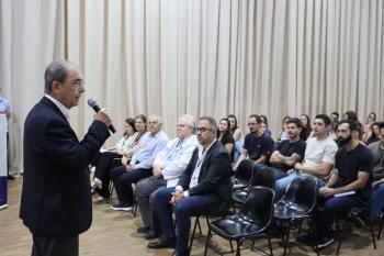 Na abertura o reitor da UNIFIPA, Dr. Nelson Jimenes, destacou a relevância do início do Internato para a formação profissional dos estudantes, ressaltando a importância dessa etapa na consolidação dos conhecimentos adquiridos ao longo do curso. Na sequência, o diretor da Educação da Fundação Padre Albino, Bruno Dias, abordou o legado construído pela instituição e refletiu sobre o propósito da formação médica. Ele também mencionou a conquista da nota máxima (5) no Exame Nacional de Desempenho dos Estudantes (Enamed) pela turma 51 da FAMECA, destacando o percurso acadêmico desenvolvido ao longo dos últimos anos e os desafios que se apresentam a partir do Internato.