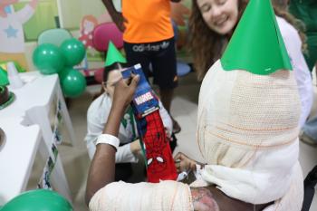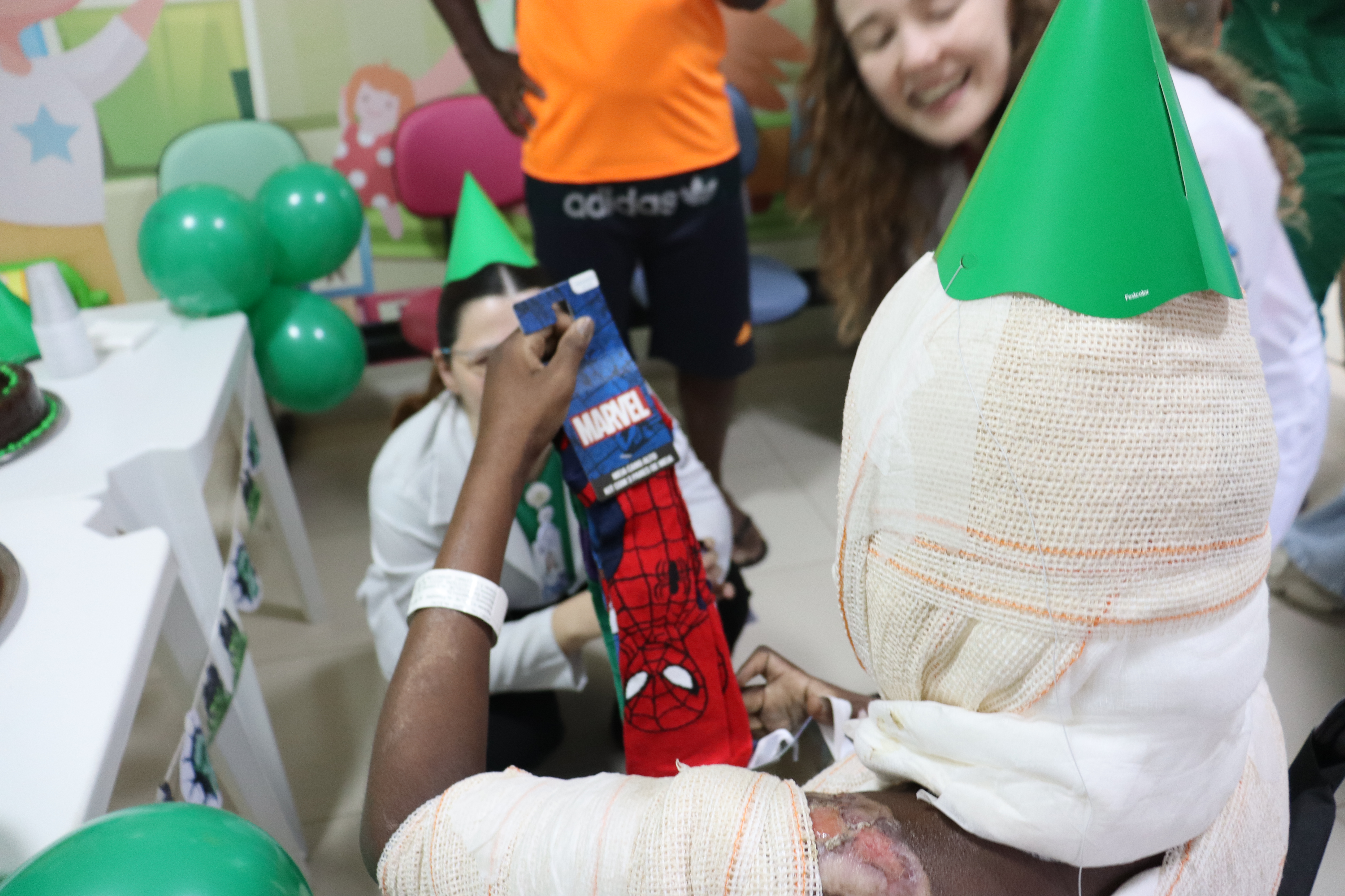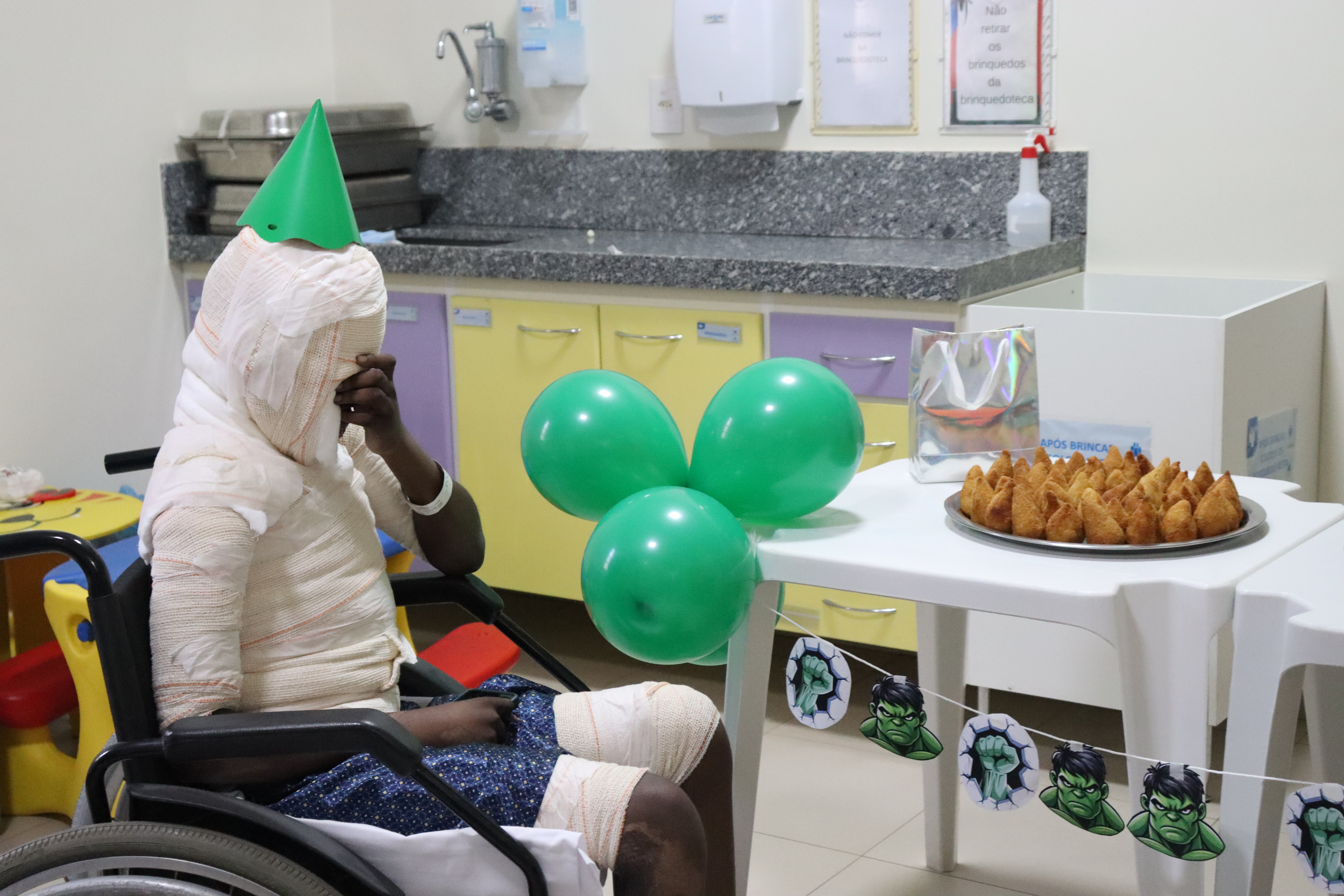 A ação teve como tema o personagem Hulk, escolhido por ser o personagem favorito do paciente. Para marcar a data foi preparada comemoração na brinquedoteca da Pediatria do HPA, com bolo, refrigerante, presente da equipe e coxinha, alimento que fazia parte de desejo manifestado pelo paciente e que foi atendido pela equipe, respeitando as orientações nutricionais e clínicas.