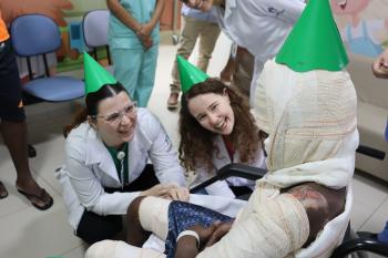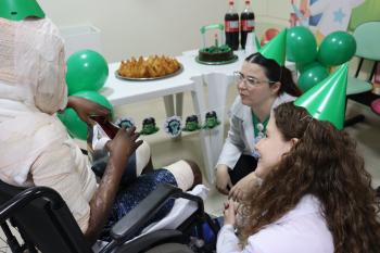 Internado há nove meses na Unidade de Tratamento de Queimados (UTQ) do Hospital Padre Albino, o paciente R. A. teve uma tarde diferente nesta quinta-feira, 5 de fevereiro, data em que celebrou seu aniversário. A comemoração foi organizada pela equipe do Serviço de Nutrição e Dietética, em parceria com a equipe de Humanização.