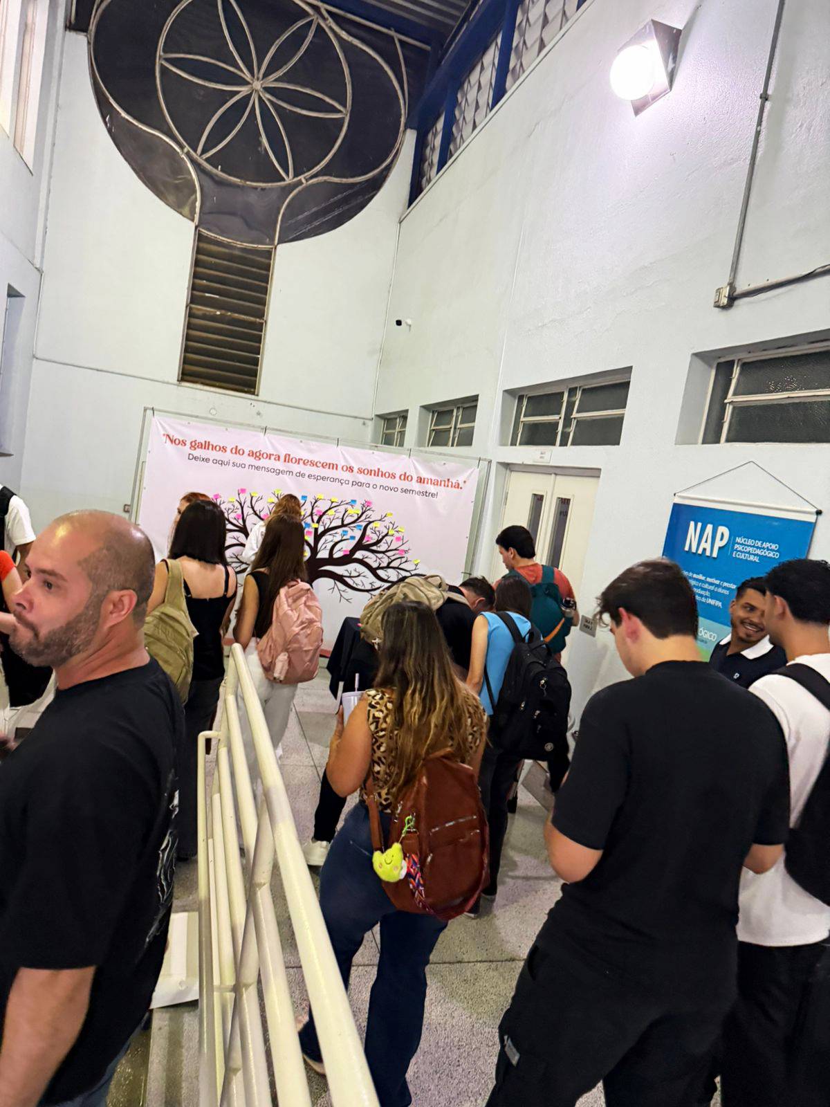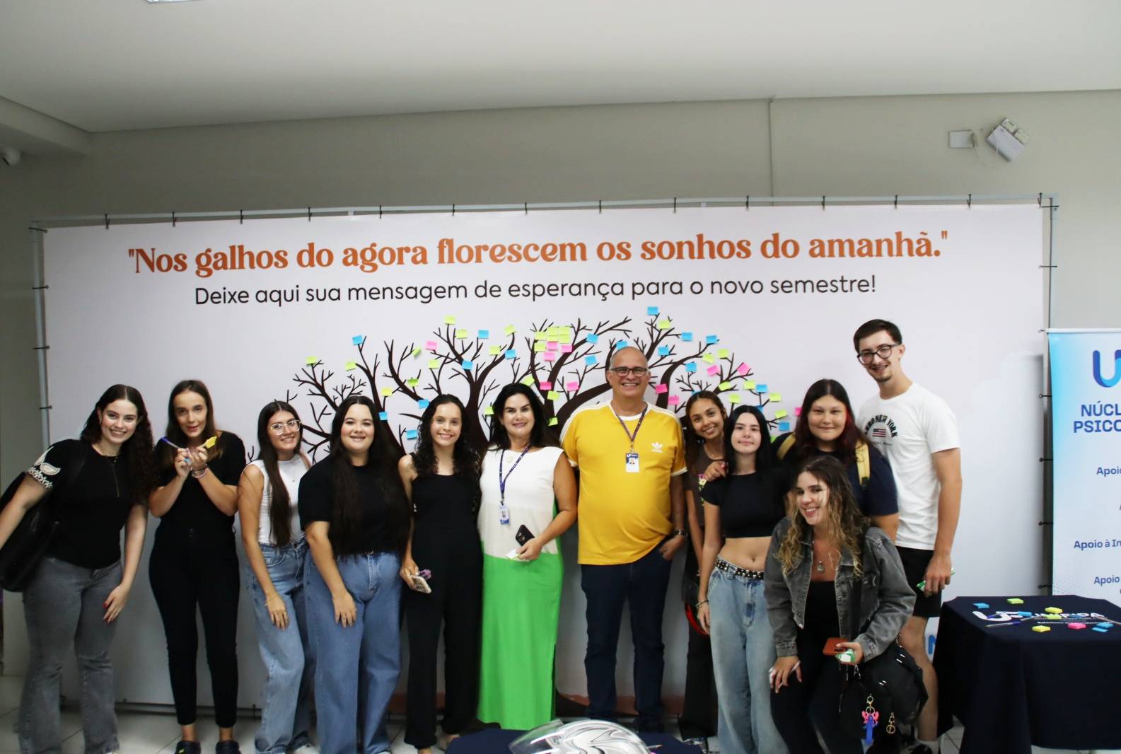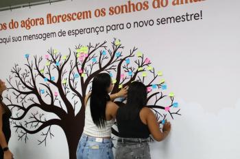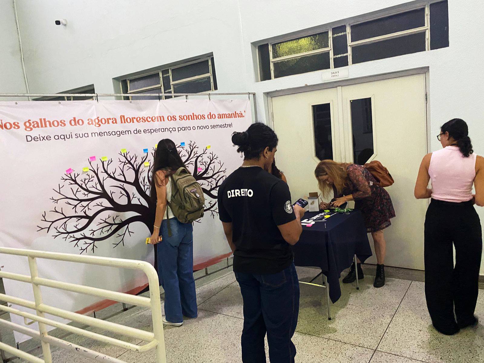Os cursos de Administração, Biomedicina, Direito, Educação Física, Enfermagem, Farmácia, Pedagogia, Psicologia, Tecnologia em Gestão de Recursos Humanos e Engenharia Agronômica retomaram as atividades acadêmicas nesta data. Durante a recepção, o NAP promoveu dinâmica em que os estudantes foram convidados a deixar mensagens positivas em painel que representava uma árvore sem galhos, simbolizando o começo do período letivo. As mensagens escritas pelos alunos compuseram as “folhas” da árvore; também foram distribuídos picolés.