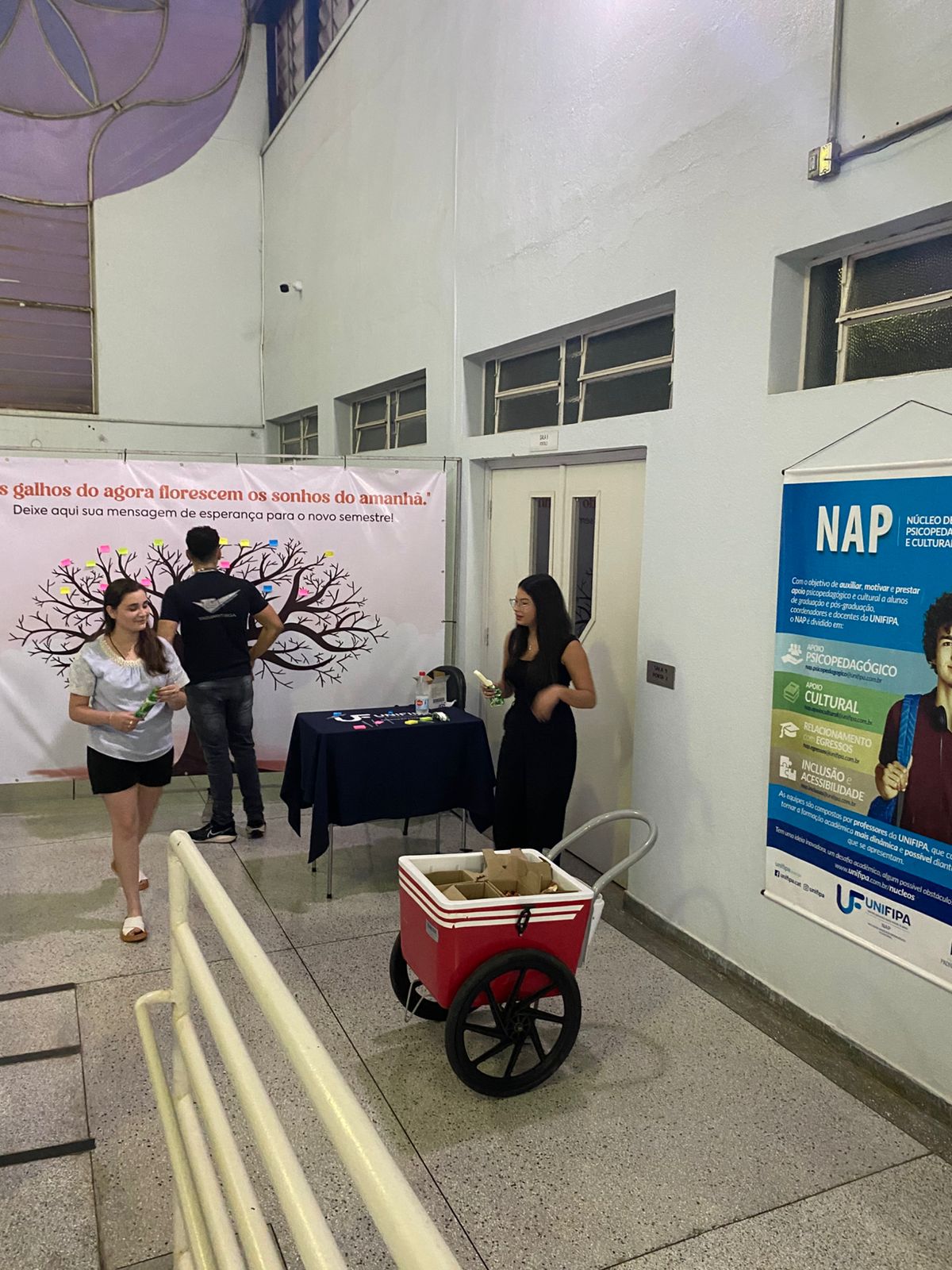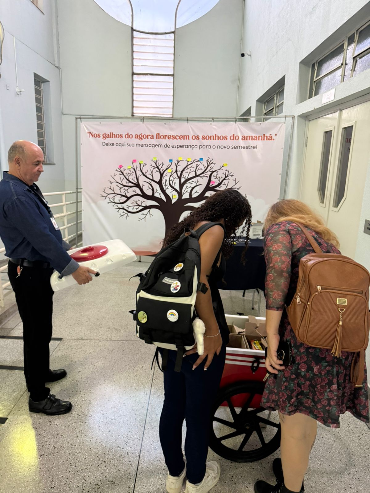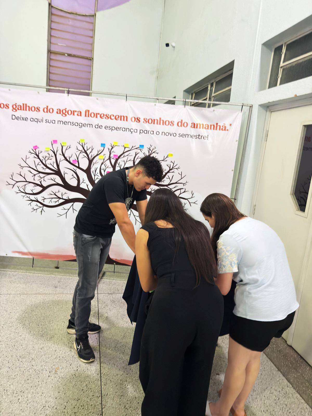Os cursos de Administração, Biomedicina, Direito, Educação Física, Enfermagem, Farmácia, Pedagogia, Psicologia, Tecnologia em Gestão de Recursos Humanos e Engenharia Agronômica retomaram as atividades acadêmicas nesta data. Durante a recepção, o NAP promoveu dinâmica em que os estudantes foram convidados a deixar mensagens positivas em painel que representava uma árvore sem galhos, simbolizando o começo do período letivo. As mensagens escritas pelos alunos compuseram as “folhas” da árvore; também foram distribuídos picolés.