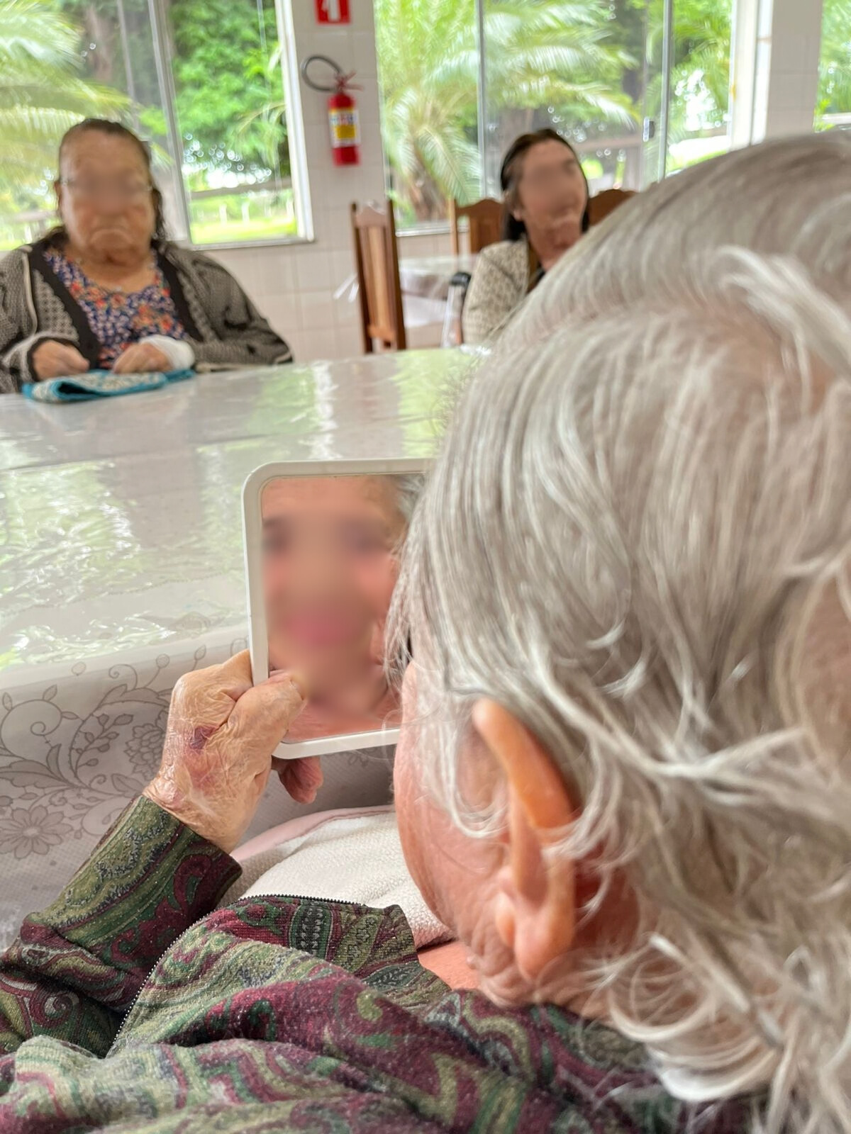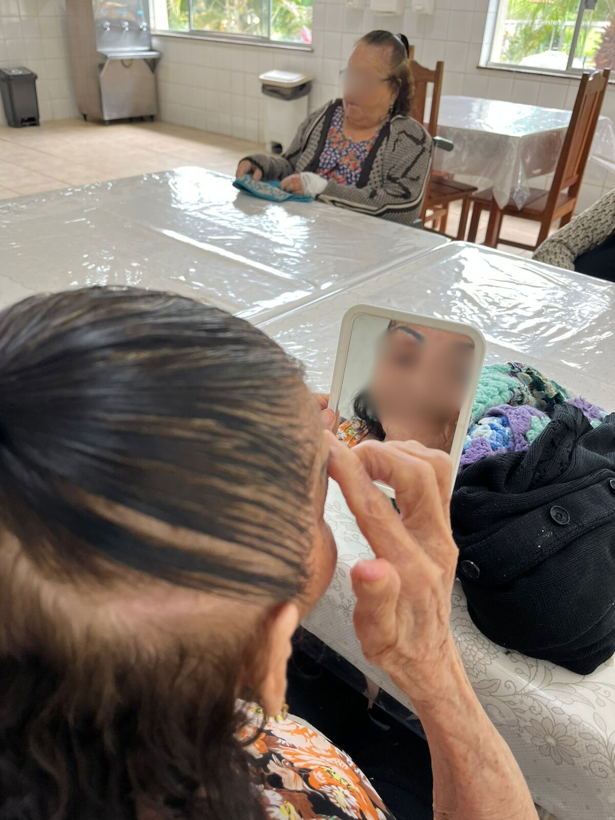 A proposta convidou os participantes a refletirem sobre o próprio reflexo e, principalmente, sobre tudo aquilo que vai além da imagem. Afinal, o que vemos quando olhamos para o rosto de quem já percorreu tantas décadas? A iniciativa foi promovida pela educadora física da unidade, Marina Rabay, que conduziu a dinâmica com sensibilidade e acolhimento. A atividade buscou fortalecer a autoestima, valorizar as histórias de vida e estimular a troca de experiências entre os residentes.