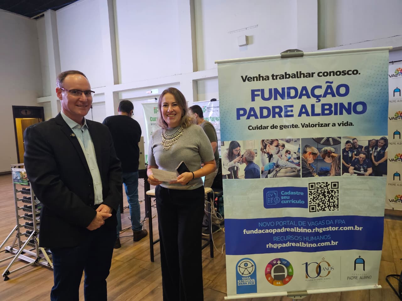 A Fundação Padre Albino participou na última quarta-feira, 25 de fevereiro, da 1ª Feira de Empregabilidade promovida pela ACE Catanduva. O evento, realizado no Clube de Tênis de Catanduva, reuniu empresas, instituições e candidatos em busca de oportunidades no mercado de trabalho. A equipe do setor de Recursos Humanos captou currículos e apresentou as oportunidades disponíveis na instituição.