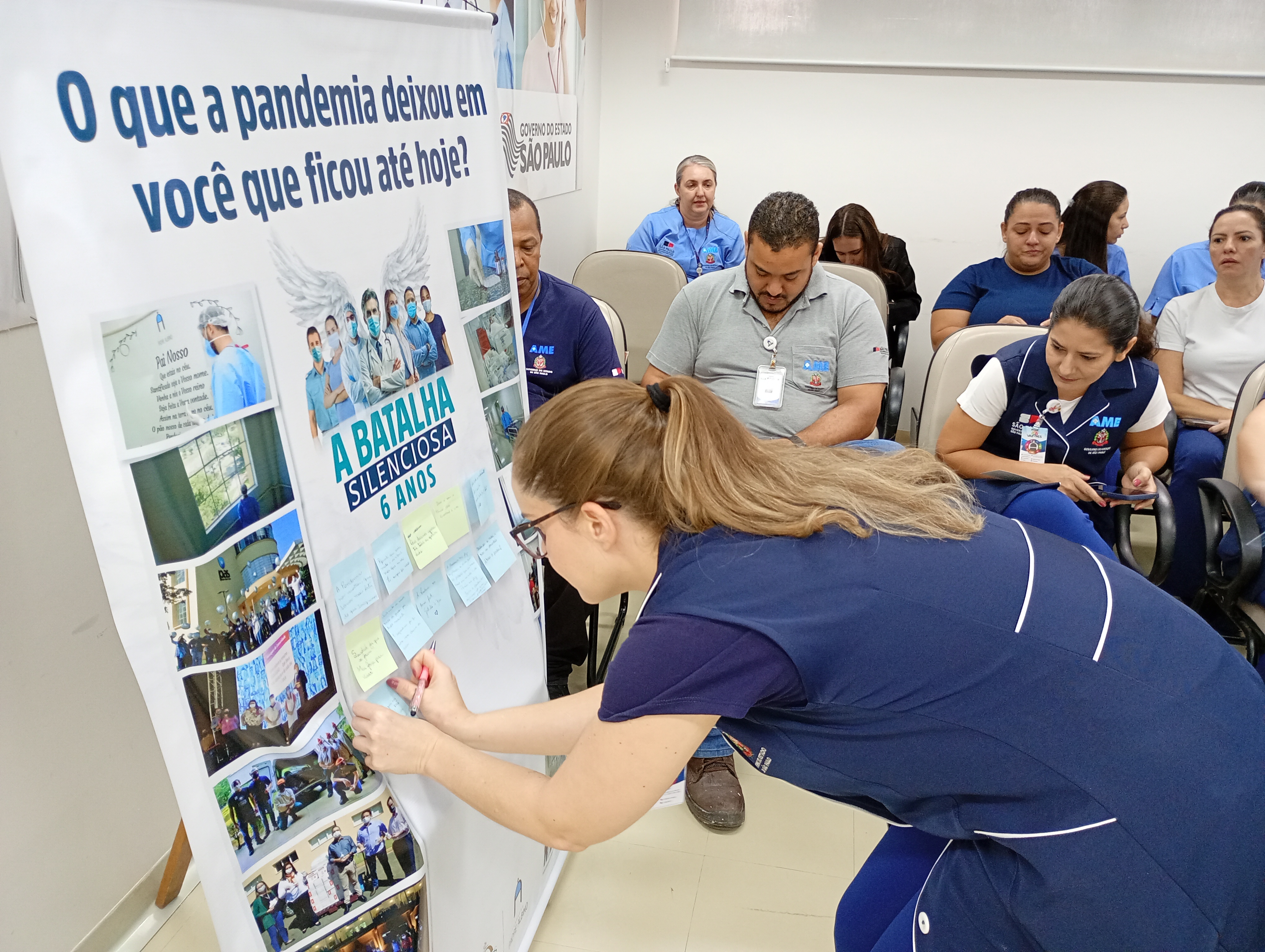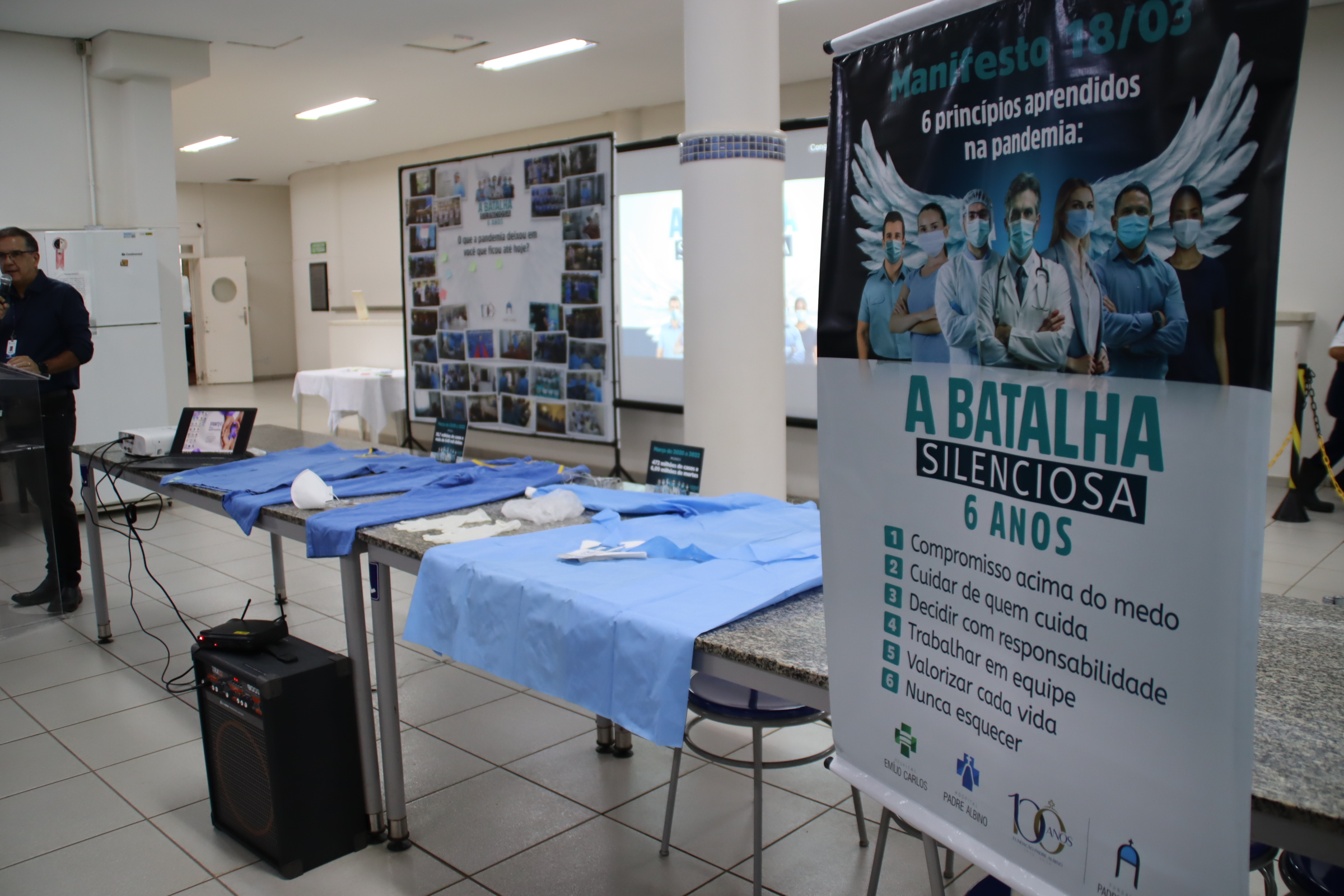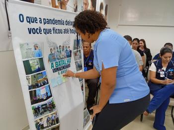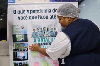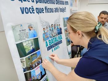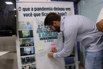 A programação acontece entre os dias 18 e 19 de março e está sendo marcada por ações que resgatam a vivência dos profissionais durante o período mais crítico da pandemia. Entre elas, a exibição de vídeo homenagem com depoimento; exposição de imagens com a reflexão “O que a pandemia deixou em você que ficou até hoje?”; exposição Memória da Batalha, que reuniu equipamentos de proteção individual (EPIs) utilizados na época e manifesto com seis princípios aprendidos durante a crise sanitária: compromisso acima do medo, cuidar de quem cuida, decidir com responsabilidade, trabalhar em equipe, valorizar cada vida e nunca esquecer.