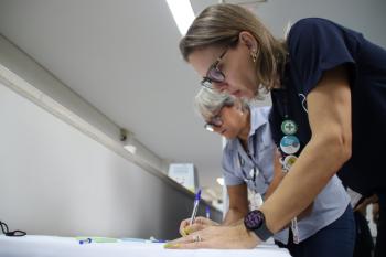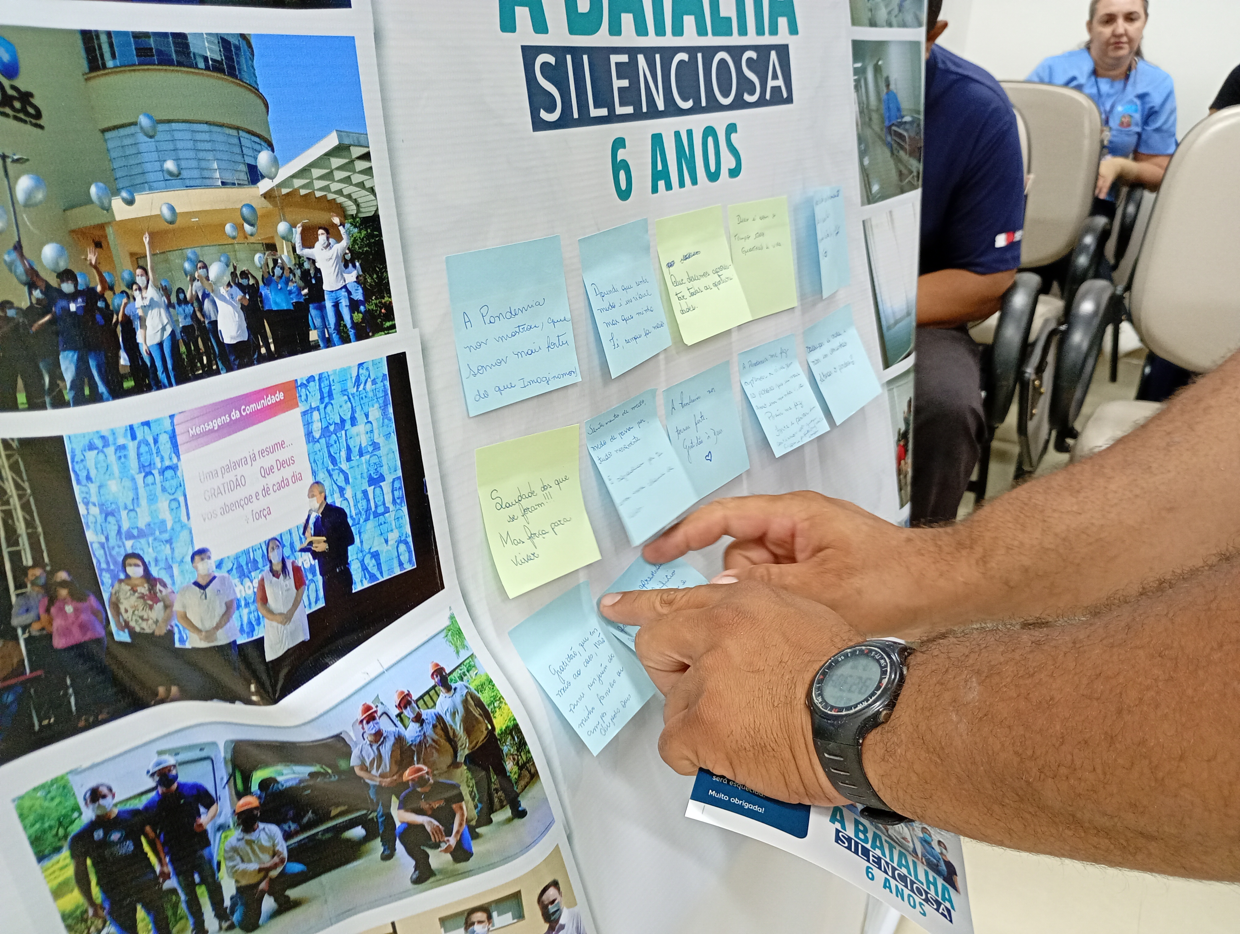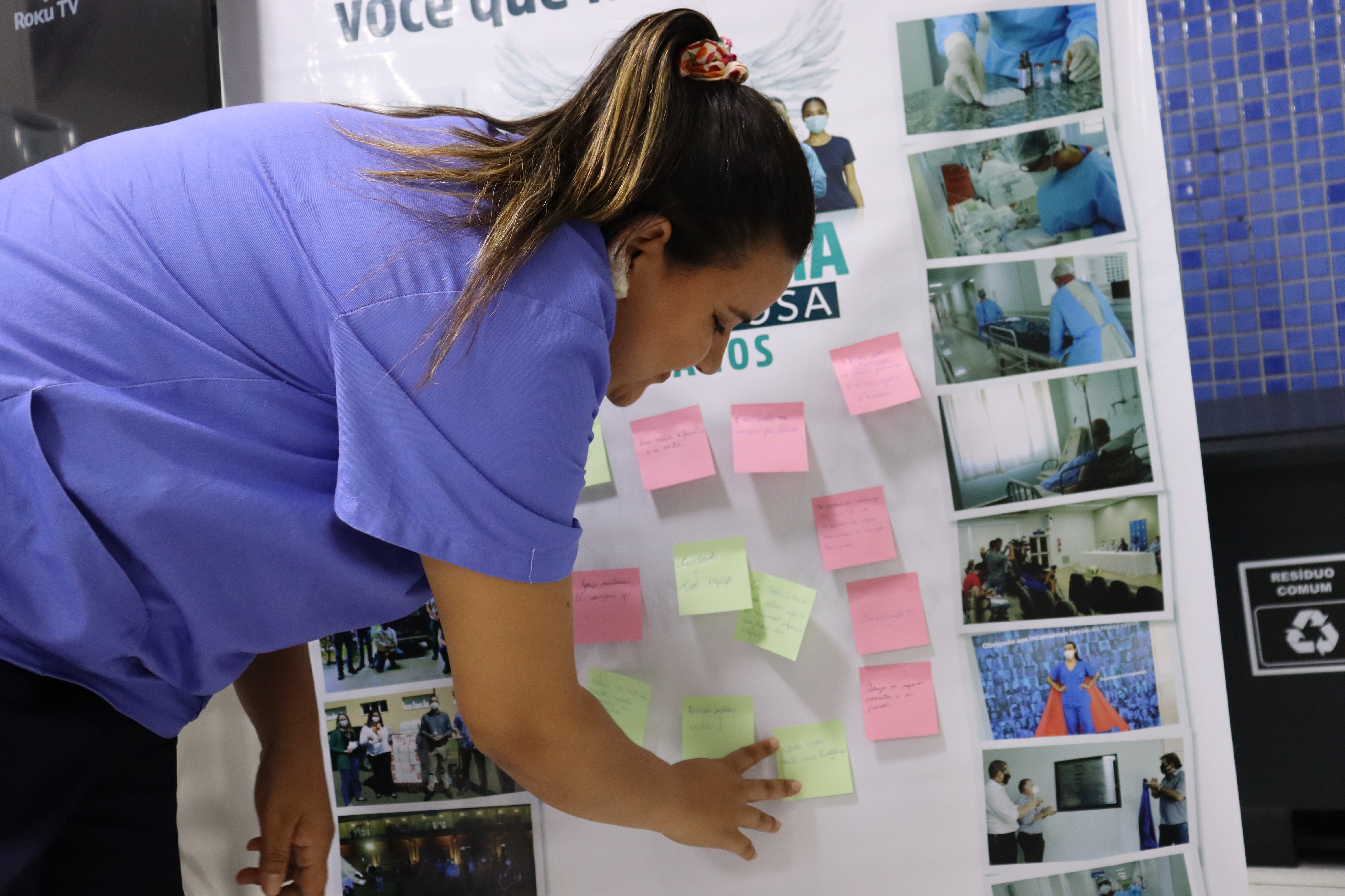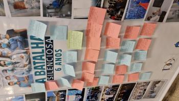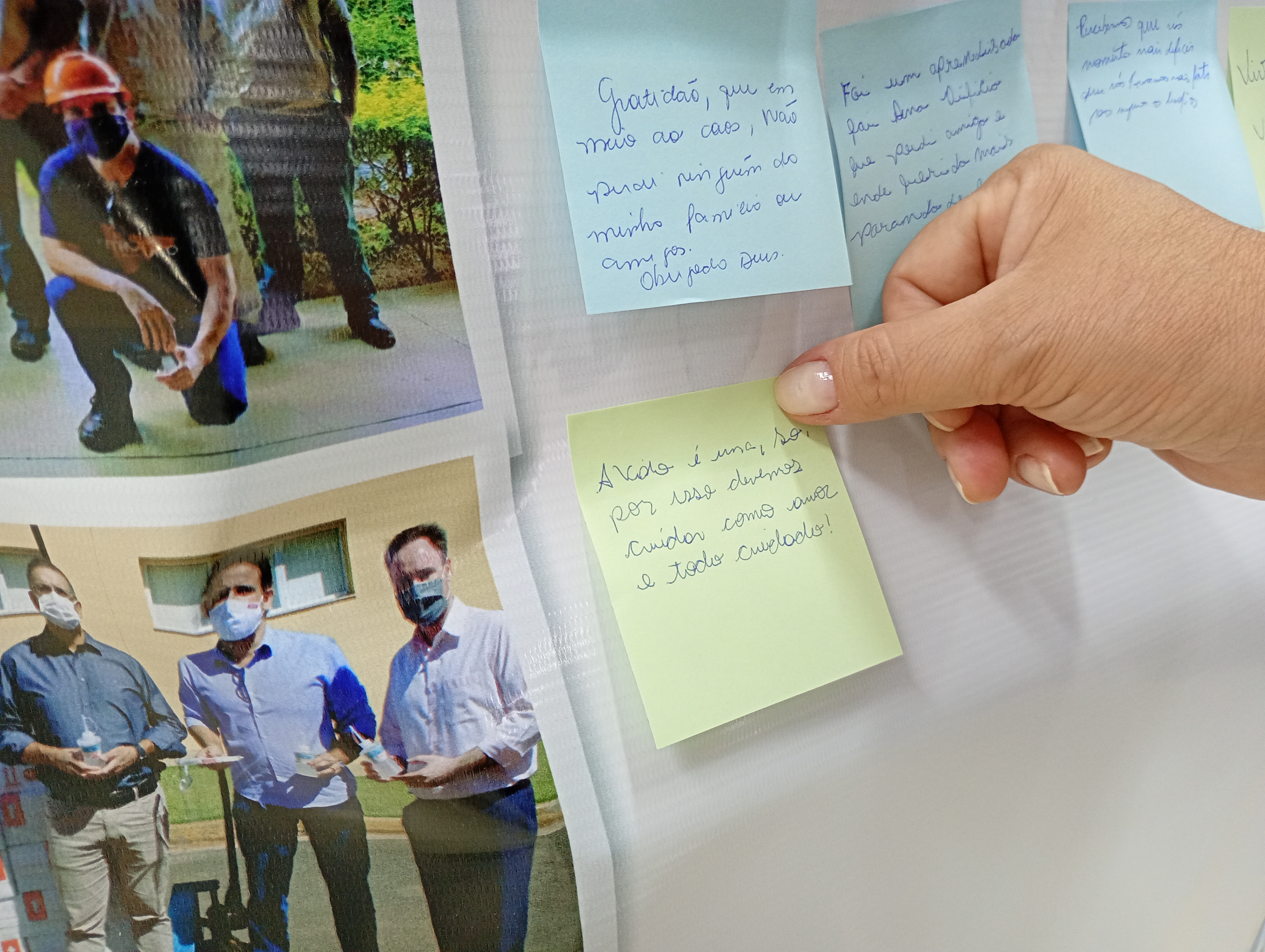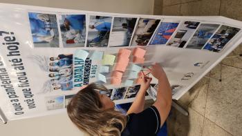 Durante as ações, que estão acontecendo em todas as unidades da Fundação, os colaboradores deixam mensagens de esperança e gratidão em mural coletivo.