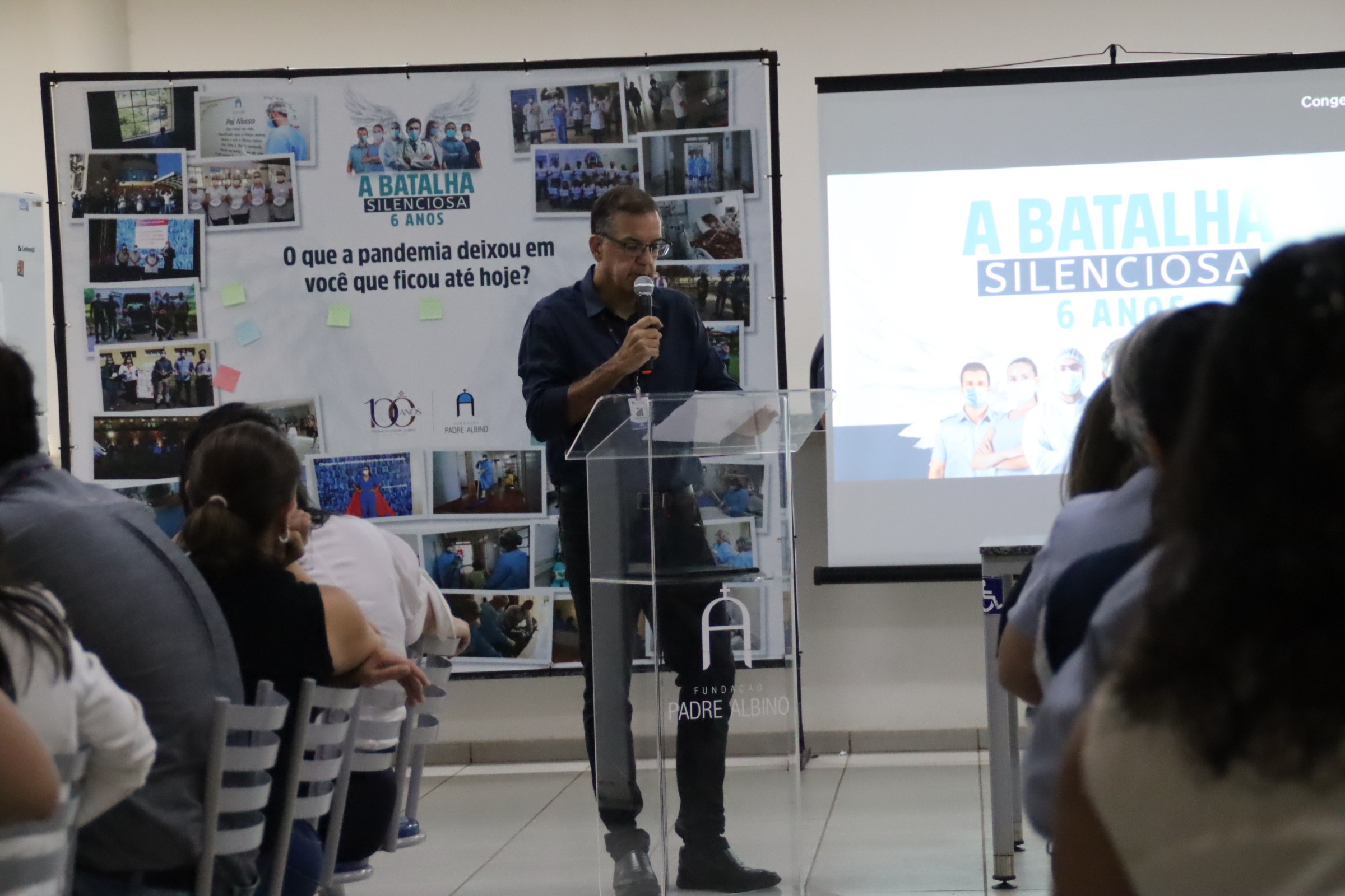 Seis anos após o primeiro registro de caso de Covid-19, a Fundação Padre Albino promoveu a 2ª edição do evento Batalha Silenciosa, reunindo colaboradores de todas as suas áreas de atuação - Saúde, Educação e Assistência Social para relembrar, reconhecer, agradecer e refletir.