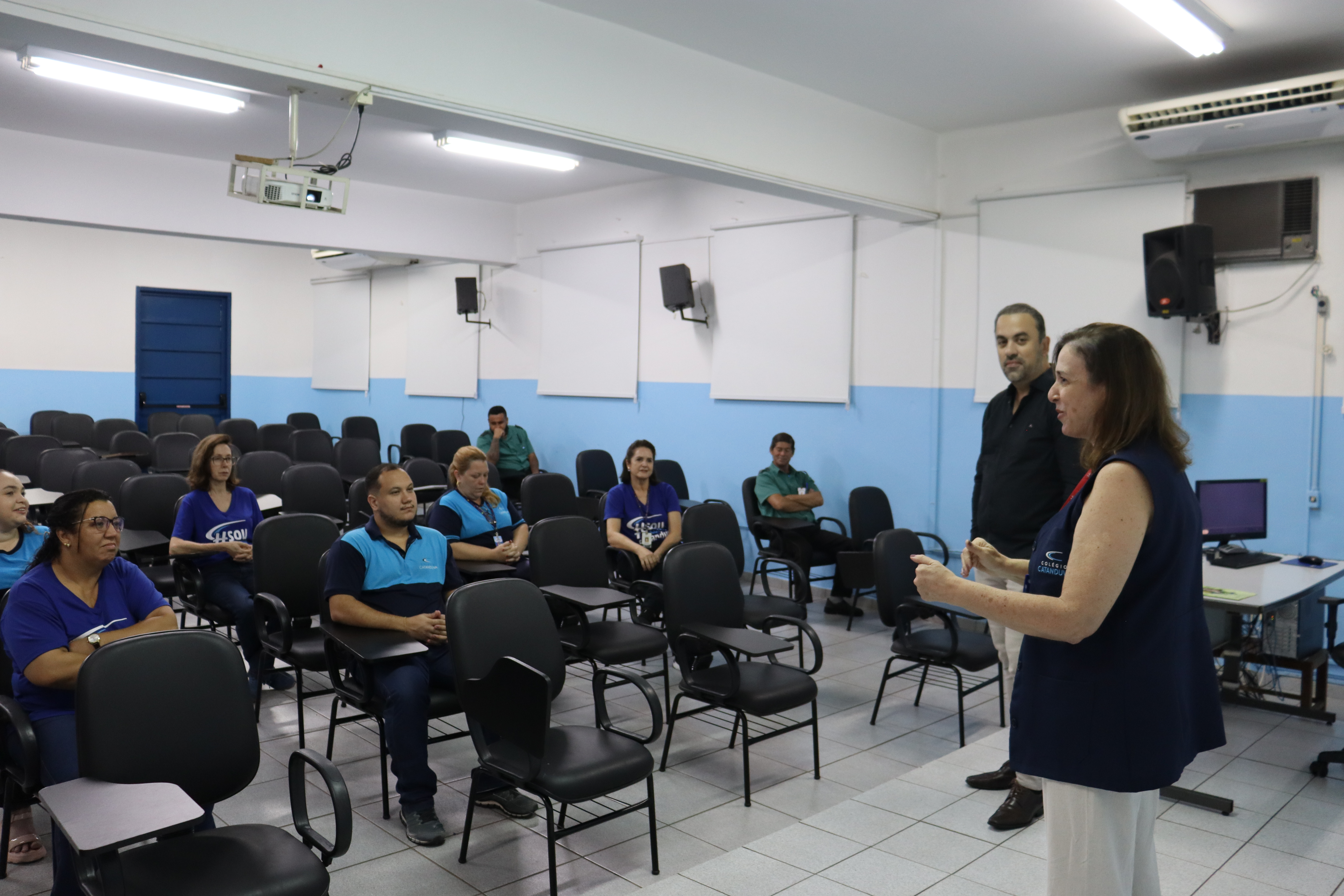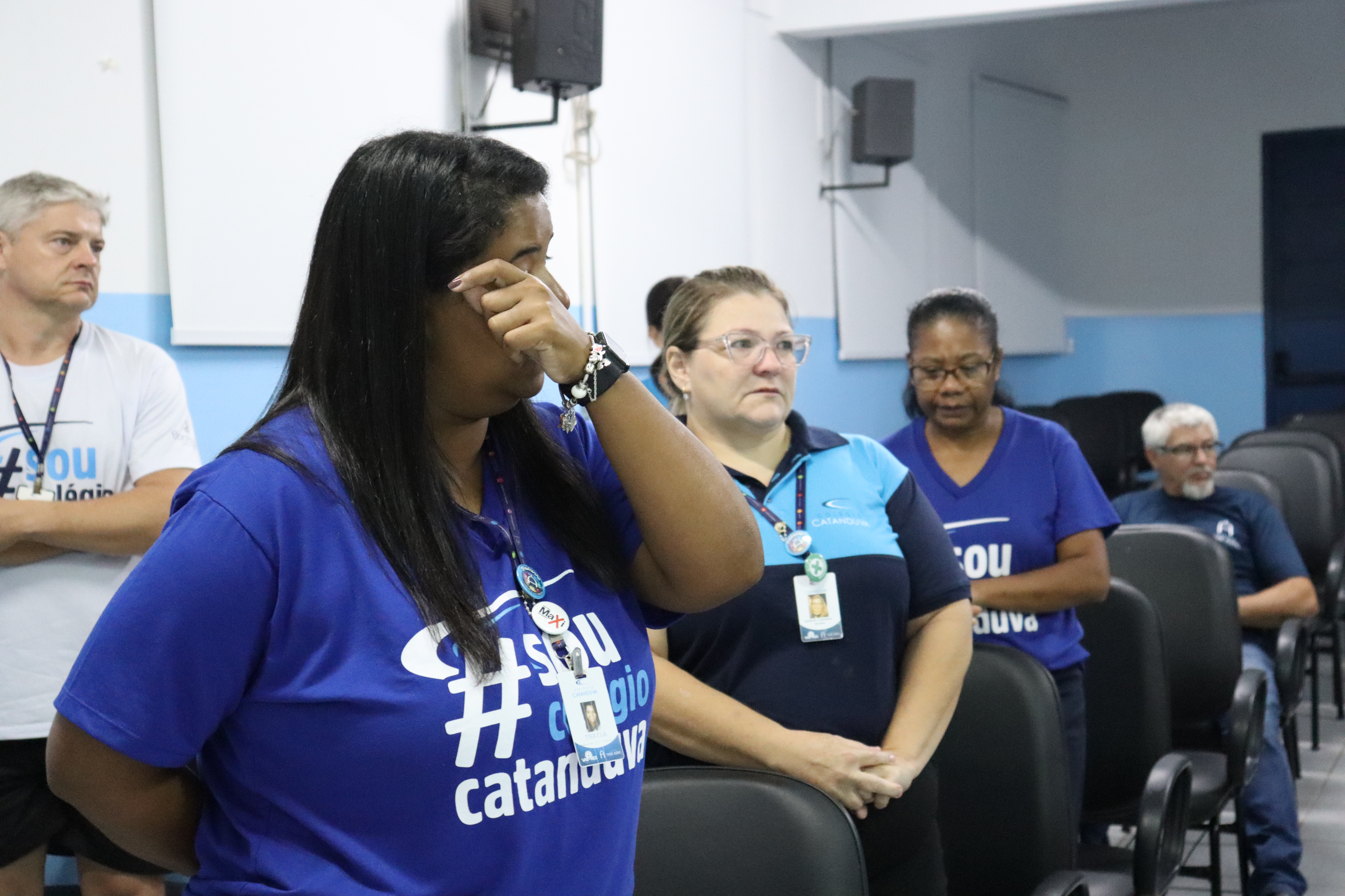 Histórias de superação também marcaram o evento, como a de Marlene Sanches Spineli, inspetora do Colégio Catanduva, que enfrentou a doença logo no início da pandemia. “Fui a primeira funcionária a pegar e fiquei internada nove dias. Ninguém conhecia muito bem a doença. Quando voltei, foi difícil, as pessoas tinham medo de chegar até mim. Hoje completo 30 anos no colégio e estou muito feliz.”