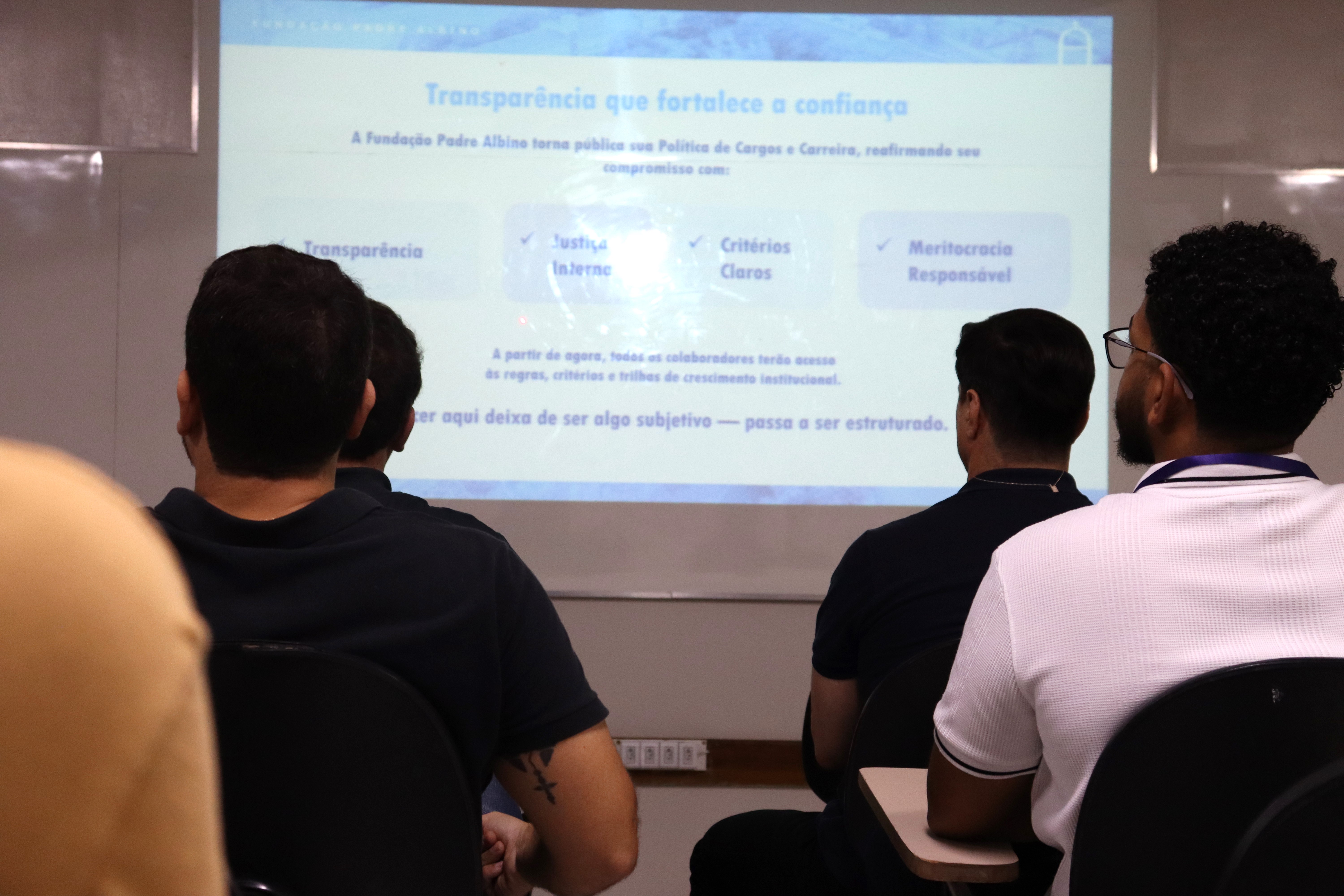 A Fundação Padre Albino promoveu reunião com colaboradores para apresentar e discutir a implantação do Plano de Cargos, Carreiras e Salários. A iniciativa tem como principal objetivo valorizar os trabalhadores e estabelecer diretrizes claras para o crescimento profissional na instituição. Durante o encontro foi destacada a importância de construir estrutura que seja ao mesmo tempo justa, competitiva e sustentável, alinhada ao propósito institucional e às boas práticas de governança. A proposta busca não apenas organizar as funções e remunerações, mas também oferecer transparência nos processos de evolução de carreira.
