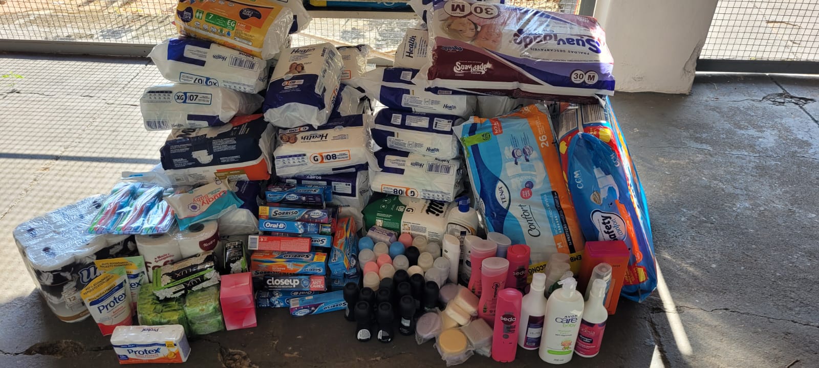 Ao todo foram doados diversos itens essenciais para o dia a dia de atendimentos na instituição de longa permanência, incluindo 996 fraldas, além de alimentos, produtos de higiene pessoal e limpeza. Entre os itens arrecadados estão leite, arroz, feijão, açúcar, óleo, café, além de sabonetes, creme dental, desodorantes, papel higiênico, entre outros.