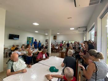 No último dia 21, o Recanto Monsenhor Albino recebeu a visita do padre Felício Donizete Anúncio, da Paróquia Santo Expedito de Catanduva, acompanhado do bispo Dom José Benedito Cardoso, em ação marcada pela solidariedade e espiritualidade. A visita pastoral teve como objetivo a entrega das doações arrecadadas pela comunidade paroquial, além de proporcionar momentos de acolhimento às pessoas idosas institucionalizadas. Os visitantes também conheceram a capela do Recanto e participaram de café da tarde junto com residentes e colaboradores.