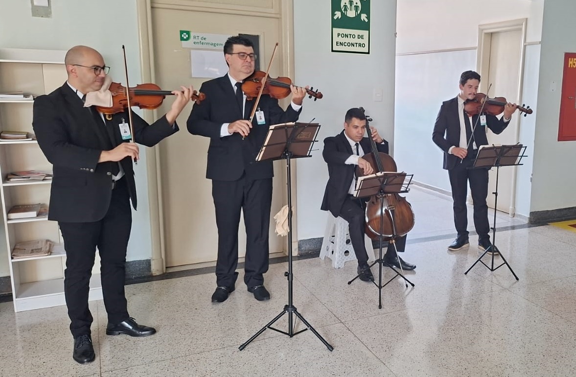 Formado por grupo de músicos voluntários da igreja Congregação Cristã do Brasil, com o apoio do Centro Integrado de Humanização dos hospitais da Fundação Padre Albino, o ‘Música nos hospitais’ tem como objetivo reforçar a importância de práticas que valorizem o cuidado além do aspecto clínico, como o caso da música. Os músicos percorreram diferentes setores do hospital ao som de temas clássicos, proporcionando experiência sensorial que contribuiu para a melhoria do ambiente e do estado emocional de todos os envolvidos.