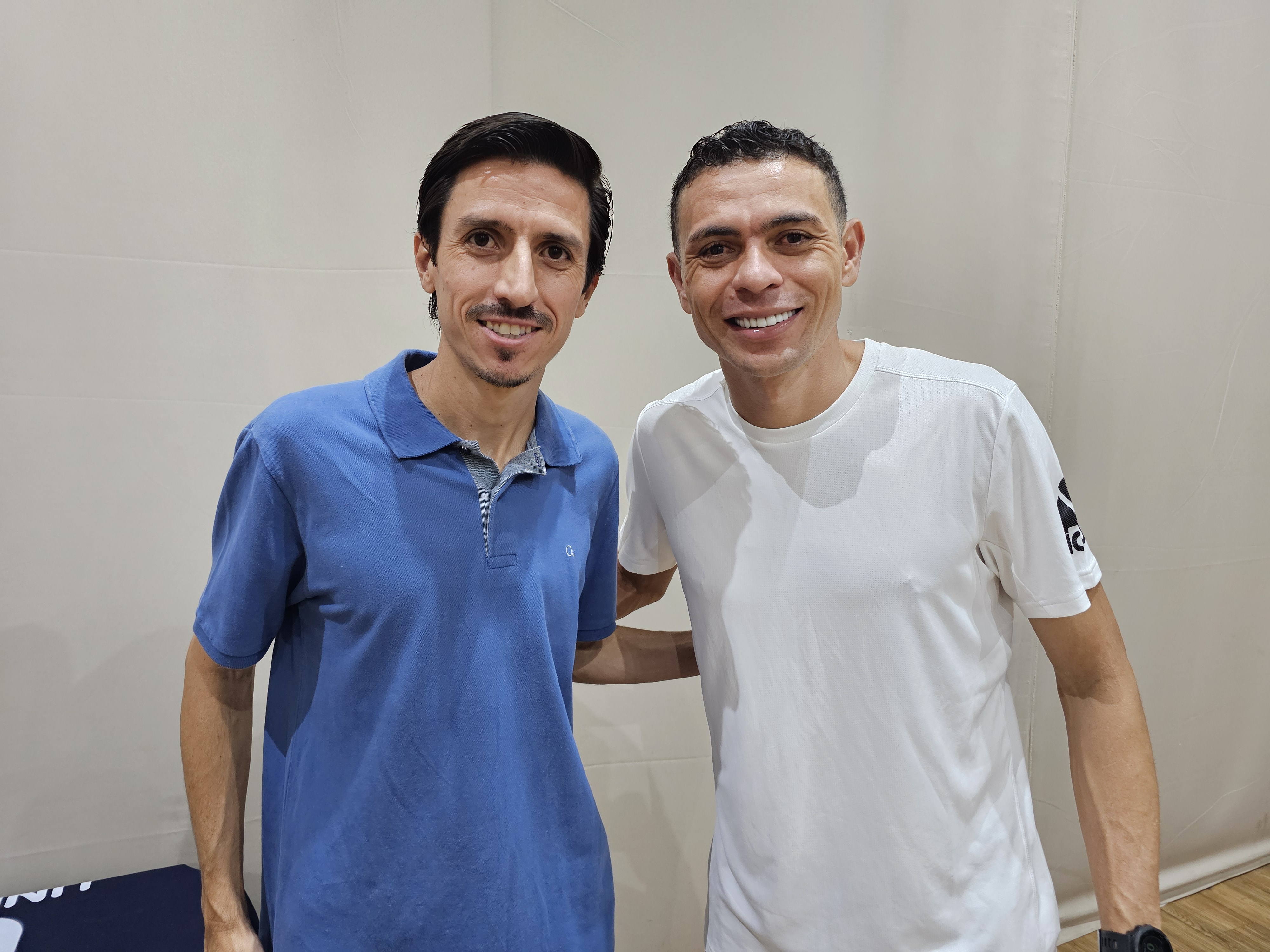 Altobeli ao lado do treinador Guilherme Salgado, egresso do curso de Educação Física da UNIFIPA (2004), durante encontro com estudantes.