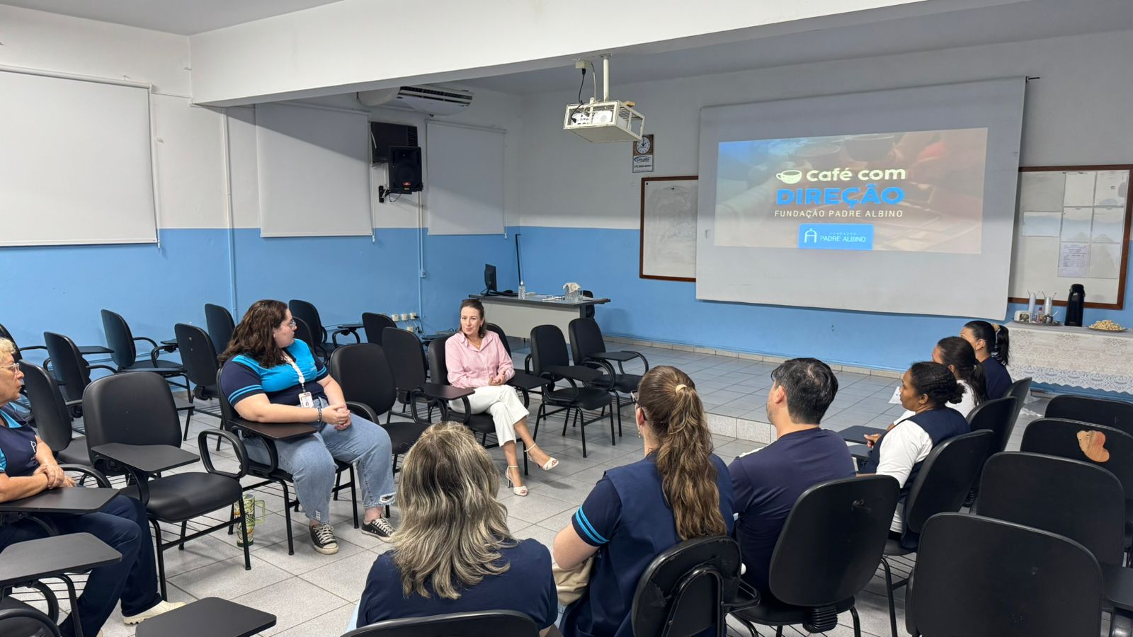 No último dia 7, a Diretoria Executiva da Fundação Padre Albino promoveu mais uma edição do “Café com Direção”, iniciativa que tem como objetivo fortalecer a comunicação direta com os colaboradores. O encontro institucional foi conduzido pela diretora de Recursos Humanos, Débora Eli Maieves, no Colégio Catanduva, unidade mantida pela FPA. A pauta central do encontro foi a apresentação e discussão dos principais pontos de melhoria identificados por meio da Pesquisa de Clima Organizacional. A ferramenta é utilizada para avaliar a percepção dos profissionais em relação a aspectos essenciais do ambiente de trabalho em cada unidade, contribuindo para o aprimoramento contínuo das práticas institucionais.