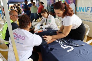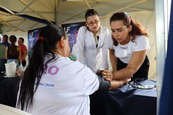 Numa manhã com danças aeróbicas, práticas de exercícios físicos e jogos pedagógicos, o projeto também ofereceu orientações preventivas de massa e postura corporal, percentual de gordura, teste de glicemia capilar (diabetes) para jovens, adultos e pessoas idosas da cidade. Para os pequenos teve distribuição de pipoca e algodão-doce. As práticas foram desenvolvidas pelos alunos dos cursos de Educação Física, Biomedicina e Pedagogia da Unifipa, sob coordenação dos professores. “Isso garante resultados tanto na experiência do futuro educador físico quanto na qualidade de vida dos participantes”, explica o coordenador do curso de Educação Física, Prof. Me. Igor Augusto Braz.