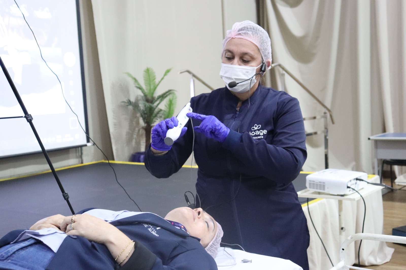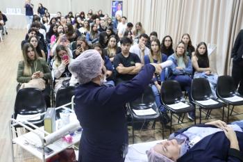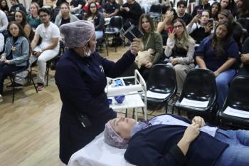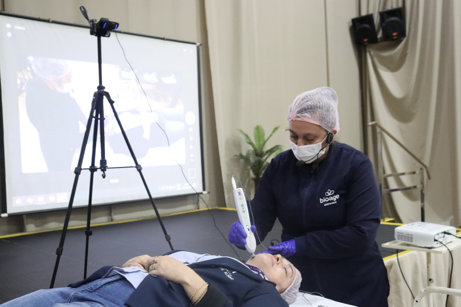 A abertura contou com a palestra “Vivência Bioage: Ciência, produtos e protocolos estéticos na formação biomédica”, ministrada por Carolina Mathias, representante técnica da marca Bioage. A convidada apresentou os principais avanços e cuidados relacionados aos procedimentos estéticos, com foco na segurança, preparo da pele e uso correto dos equipamentos. Foram abordados temas como peeling de plasma, classificação dos tipos de rugas, flacidez, além da indicação de produtos para prevenção, tratamento e recuperação de uso tópico e também no pós-procedimento estético. Para encerrar, Carolina fez demonstração prática de peeling de plasma, permitindo aos participantes acompanhar de perto as técnicas aplicadas na rotina estética biomédica. Ao final a palestrante sorteou brindes da marca para os participantes.