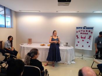 No dia 15 de outubro a unidade recebeu três alunas integrantes da Liga de Ginecologia e Obstetrícia do curso de Medicina da Unifipa/Fameca que realizaram ação educativa na recepção central. Os pacientes foram orientados sobre fatores de risco, sinais de alerta e a importância de manter os exames em dia. “Nosso objetivo foi levar informação de forma simples e acolhedora, mostrando que o conhecimento é uma das principais armas contra o câncer de mama”, destacou uma das alunas participantes da ação.