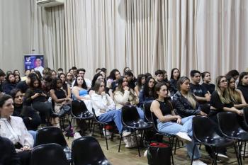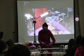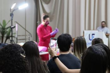 Biomédica há nove anos, Caroline Iori é especialista em estética e patologia e atua como coordenadora da pós-graduação em Estética Avançada e Procedimentos Injetáveis da UNIFIPA. A palestrante abordou o papel do biomédico na área estética, com foco na harmonização facial e no uso do ácido hialurônico. O objetivo da palestra foi desmistificar os procedimentos estéticos e esclarecer dúvidas sobre a formação e a atuação profissional na área. Ao longo da exposição, Dra. Caroline destacou a importância da qualificação técnica e da ética na prática clínica, ressaltando o diferencial que o biomédico pode oferecer ao mercado de estética avançada. Ao final, Caroline realizou um procedimento ao vivo, utilizando uma paciente modelo para demonstrar técnicas voltadas à harmonização facial natural, a importância de resultados equilibrados e seguros.