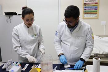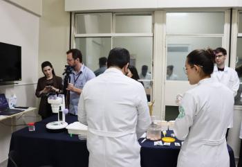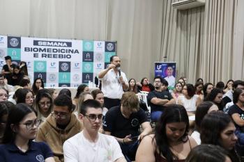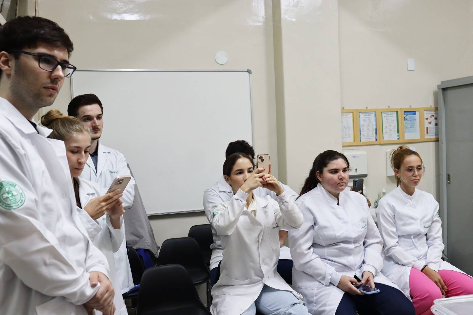 Durante a palestra o convidado abordou a rotina e os avanços na área de reprodução assistida, esclarecendo dúvidas dos alunos sobre as diferentes técnicas utilizadas, os tipos de famílias atendidas, os valores envolvidos nos procedimentos e as taxas de sucesso. A atividade contou ainda com simulação de Fertilização in Vitro (FIV) clássica, uma das técnicas mais eficazes de reprodução assistida, que oferece altas chances de sucesso para casais com dificuldades de concepção. O procedimento foi demonstrado em óvulos bovinos, com transmissão ao vivo realizada no LAHEM (Laboratório de Habilidades em Emergências Médicas) e exibida simultaneamente para os presentes na Sala Movimento e Saúde.