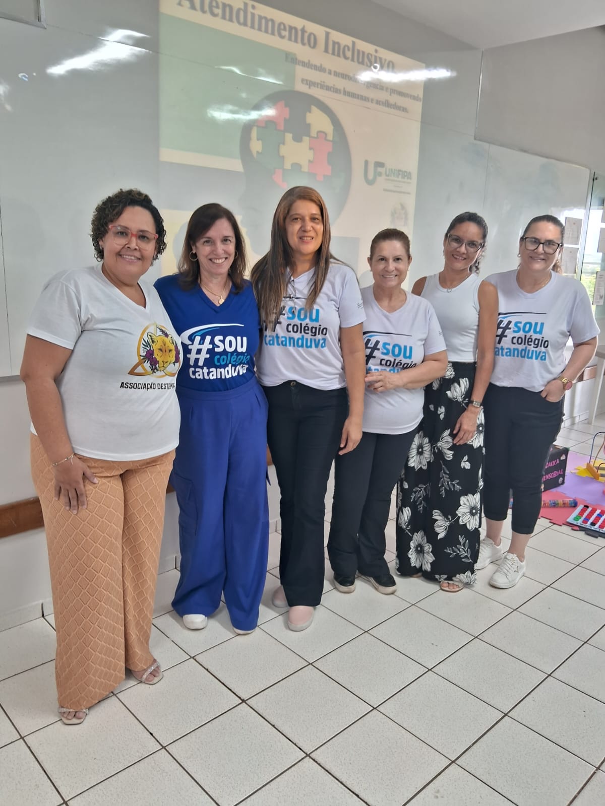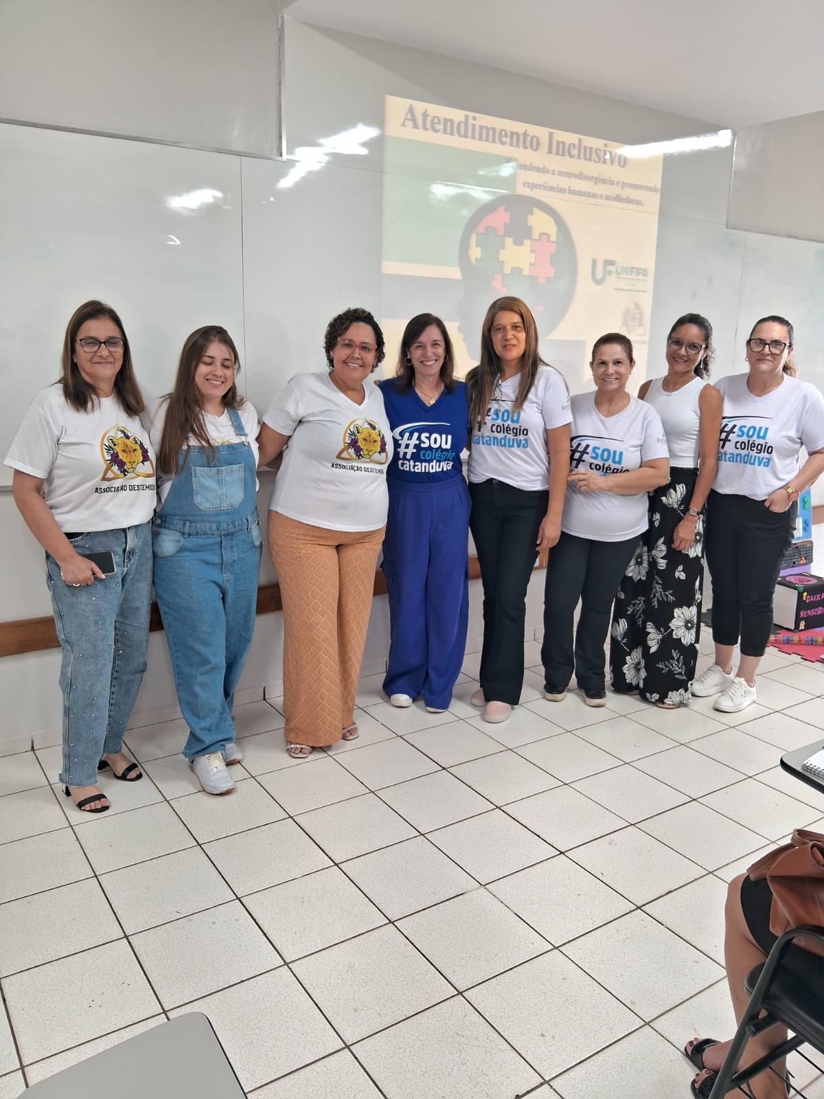Nos dias 8 e 11 de novembro, direção, supervisão pedagógica e docentes da Educação Infantil e do Ensino Fundamental – Anos Iniciais do Colégio Catanduva participaram do Curso Livre “Atendimento Inclusivo – Para além do balcão”, promovido pelo curso de Psicologia do Centro Universitário Padre Albino/UNIFIPA. A capacitação foi ministrada no Campus Sede e no Campus São Francisco por Andréa Regina de Alcântara Bertochi, idealizadora e presidente da Associação Destemidas.