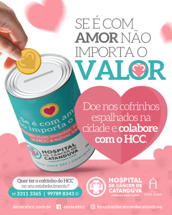 O Hospital de Câncer de Catanduva (HCC) está ampliando sua rede de solidariedade com a campanha “Se é com amor, não importa o valor”, que incentiva doações por meio de cofrinhos instalados em diversos pontos comerciais de Catanduva e cidades da região.
