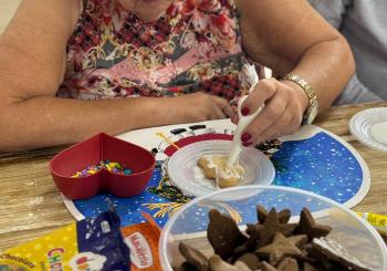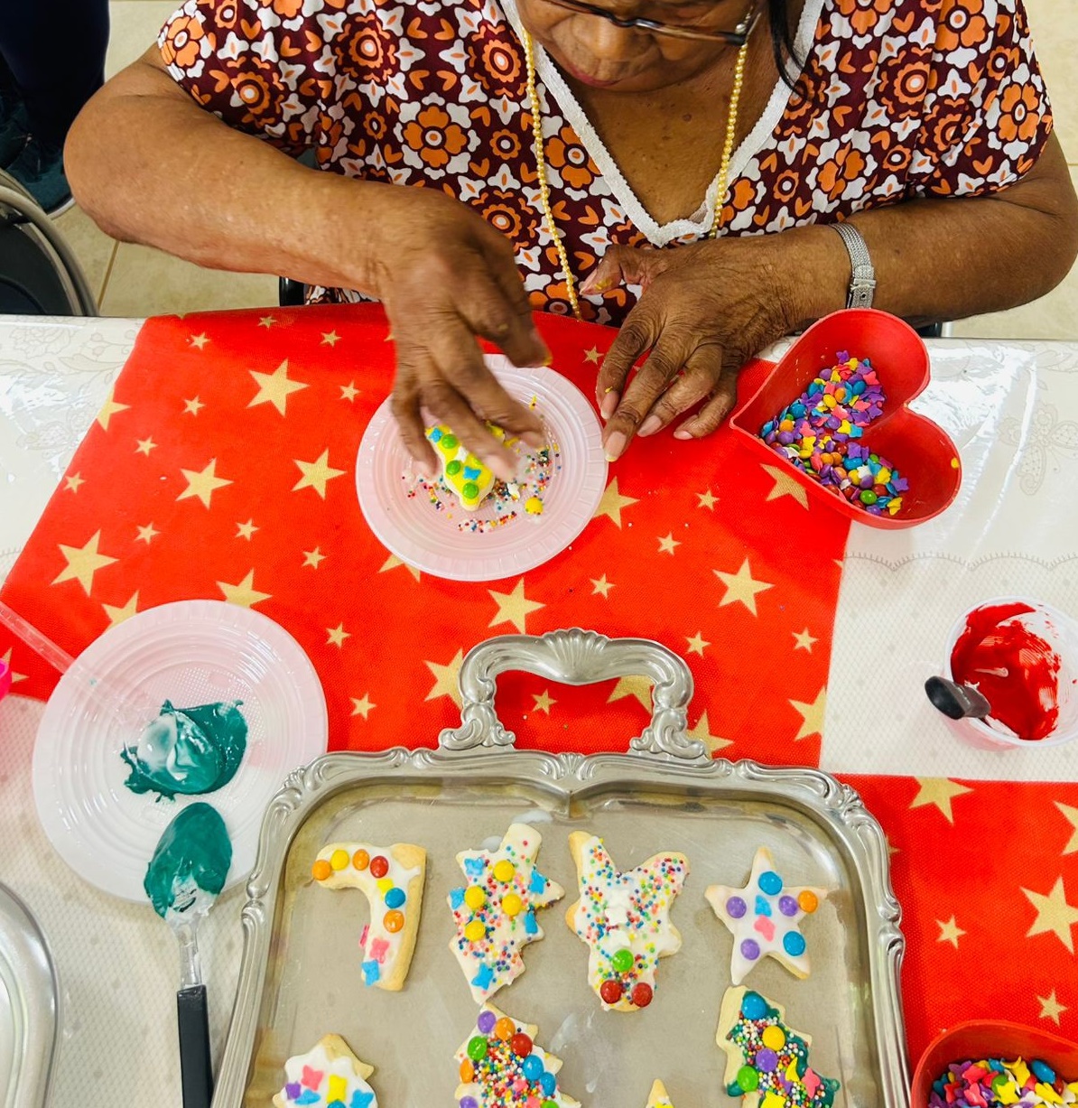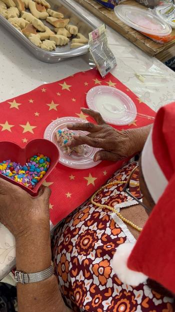 Durante a oficina, os participantes colocaram a “mão na massa” para decorar biscoitos típicos de Natal, em uma experiência lúdica que despertou memórias, emoções e sentimentos ligados às tradições natalinas. “Este tipo de ação proporciona diversão e estímulos importantes para o bem-estar físico, emocional e cognitivo das pessoas idosas”, disse Marina Rabay, educadora física da instituição.