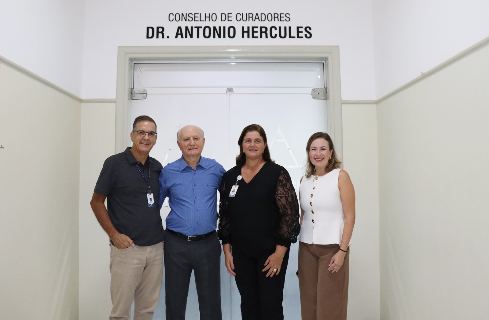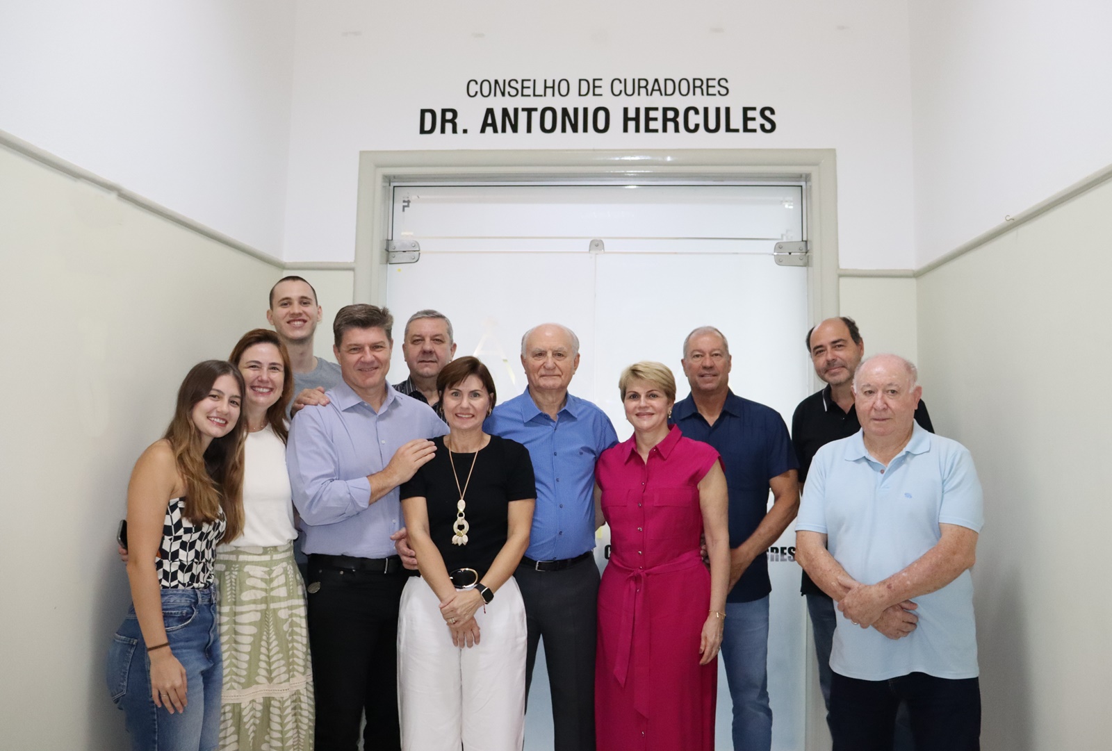 A Fundação Padre Albino realizou, na manhã desta sexta-feira, 10 de abril, ato solene em homenagem ao seu conselheiro Dr. Antonio Hércules, que passa a dar nome à sala de reuniões do Conselho de Curadores. A cerimônia reuniu familiares e amigos do homenageado, além de integrantes dos Conselhos de Administração e de Curadores, diretoria, lideranças e colaboradores do Centro de Serviços Compartilhados.