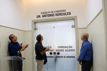 Já o presidente do Conselho de Curadores, Dr. José Carlos Rodrigues Amarante, destacou a influência e o legado do conselheiro. “Particularmente, sou eternamente grato, ao mesmo tempo orgulhoso. Foi sob sua liderança que fui chamado a assumir a presidência da Diretoria Administrativa e, junto a outros companheiros, conseguimos formar uma equipe de excelência, capaz de captar novos recursos e promover reestruturações que culminaram na Fundação que hoje orgulhosamente colocamos à disposição da população. Por isso, e por muito mais, prestamos esta homenagem”, disse. Ele também ressaltou que, ao lembrar Padre Albino, “estamos seguros de que sua maior obra permanece em mãos dignas e competentes, dentre elas, a do Dr. Antonio Hércules”.
