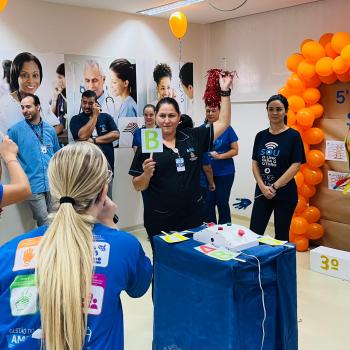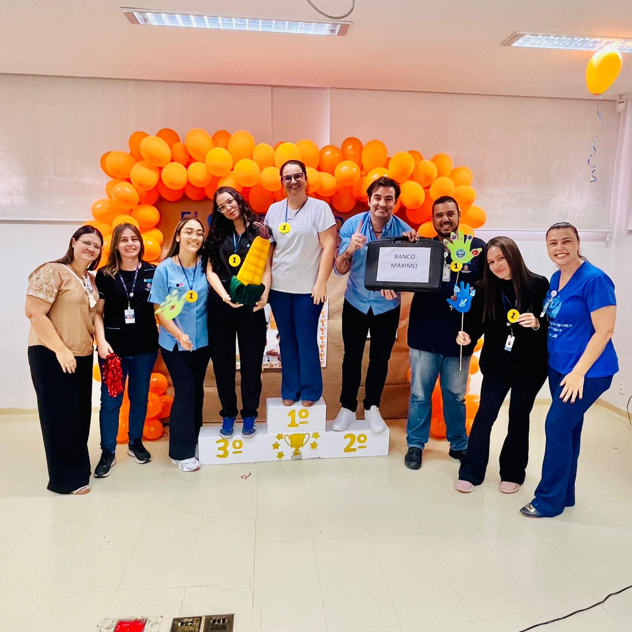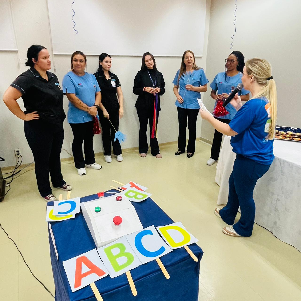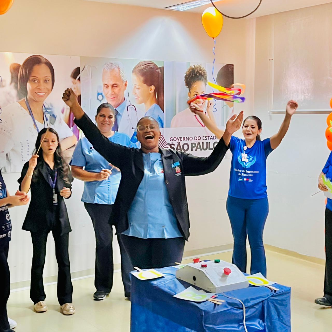 Na sequência, os colaboradores participaram de um quiz interativo de perguntas e respostas, com foco nos protocolos vigentes de segurança do paciente, promovendo a atualização de conhecimentos de maneira dinâmica e participativa. A programação foi encerrada com a premiação dos participantes, que receberam medalhas, além da entrega simbólica de “1 milhão de reais” à equipe vencedora, forma lúdica de reconhecer o desempenho, o conhecimento e o engajamento dos profissionais envolvidos.