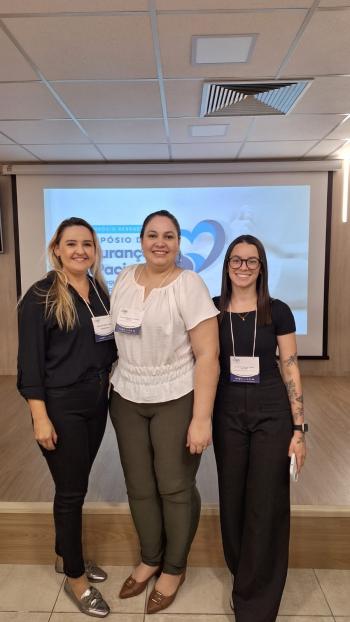 As enfermeiras Kayalem Baroni Lopes Vaccari e Raquel Bueno de Campos Garcia, da área de Segurança do Paciente, dos hospitais Padre Albino e Emílio Carlos, respectivamente, participaram junto com Damaris Eloá Lúcio, coordenadora da UTI Neonatal e Pediátrica do Hospital Padre Albino.