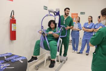 Durante toda a semana, foram realizados treinamentos, atividades práticas e interações com a equipe multiprofissional e serviços de apoio, proporcionando troca de conhecimento e reflexão sobre o papel de cada profissional na reabilitação dos pacientes hospitalizados.