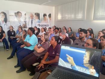 Programa São Paulo, São Libras - Durante a capacitação, os profissionais ainda receberam orientações sobre o uso da ferramenta do programa São Paulo, São Libras, que disponibiliza intérpretes de Libras em tempo real, por videochamada, para facilitar o atendimento gratuito e acessível a pessoas surdas. “A tecnologia amplia a comunicação entre equipes de saúde e pacientes, assegurando mais equidade e qualidade na assistência. Com esse trabalho de formação contínua, conseguimos oferecer atendimento cada vez mais humano, inclusivo e seguro à população”, ressaltou Karulini Polo, gerente administrativa do AME Catanduva.