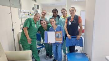 Além de Regina, participaram da ação no HPA a coordenadora do Serviço de Fisioterapia, Izabela Cristina Martins, a enfermeira coordenadora Damaris Eloá Lucio e a enfermeira Gabrielle Souza de Carvalho.