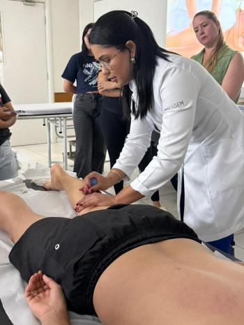 Durante a parte prática, os alunos puderam aplicar as técnicas entre si, experimentando os efeitos voltados ao relaxamento muscular, melhora da circulação, liberação miofascial e estética corporal.
