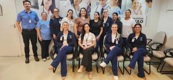 Regiane Nicolau da Silva Peinado, representante da Consultoria de Qualidade da Coordenadoria de Gestão de Contratos de Serviços de Saúde (CGCSS) e integrante do Projeto OPAS, fez a auditoria. Aproximadamente 15 colaboradores das áreas assistenciais, administrativas e de apoio do AME participaram do encontro.