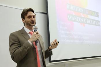 O segundo convidado, Dr. Fábio Soares de Carvalho Sposito, advogado, mestre em Direito Público e Evolução Social, ministrou a palestra “Direitos LGBTQIA+: Avanços e Desafios”. Ele destacou conquistas legais recentes e os obstáculos ainda enfrentados pela comunidade. “Avançamos muito na garantia de direitos para o público LGBT, como a criminalização da homotransfobia, o reconhecimento de direitos previdenciários a casais homoafetivos, o direito ao casamento civil igualitário e a ampliação da Lei Maria da Penha a mulheres trans e travestis. Mas ainda enfrentamos desafios a serem discutidos, como o preconceito estrutural – proibição da transgêneros a frequentarem banheiros com que eles se identificam- e a falta de políticas públicas específicas”, apontou Sposito, que também é especialista em Direitos LGBTQIA+, Família e Sucessões, e vice-coordenador da Comissão da Diversidade Sexual e de Gênero da OAB São José do Rio Preto.